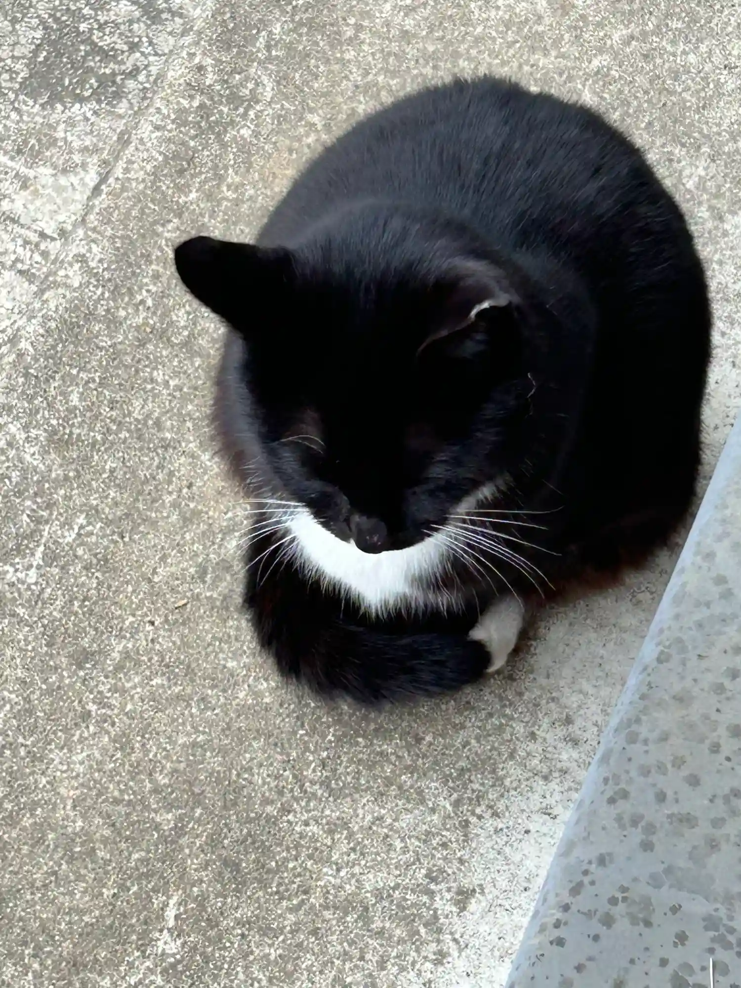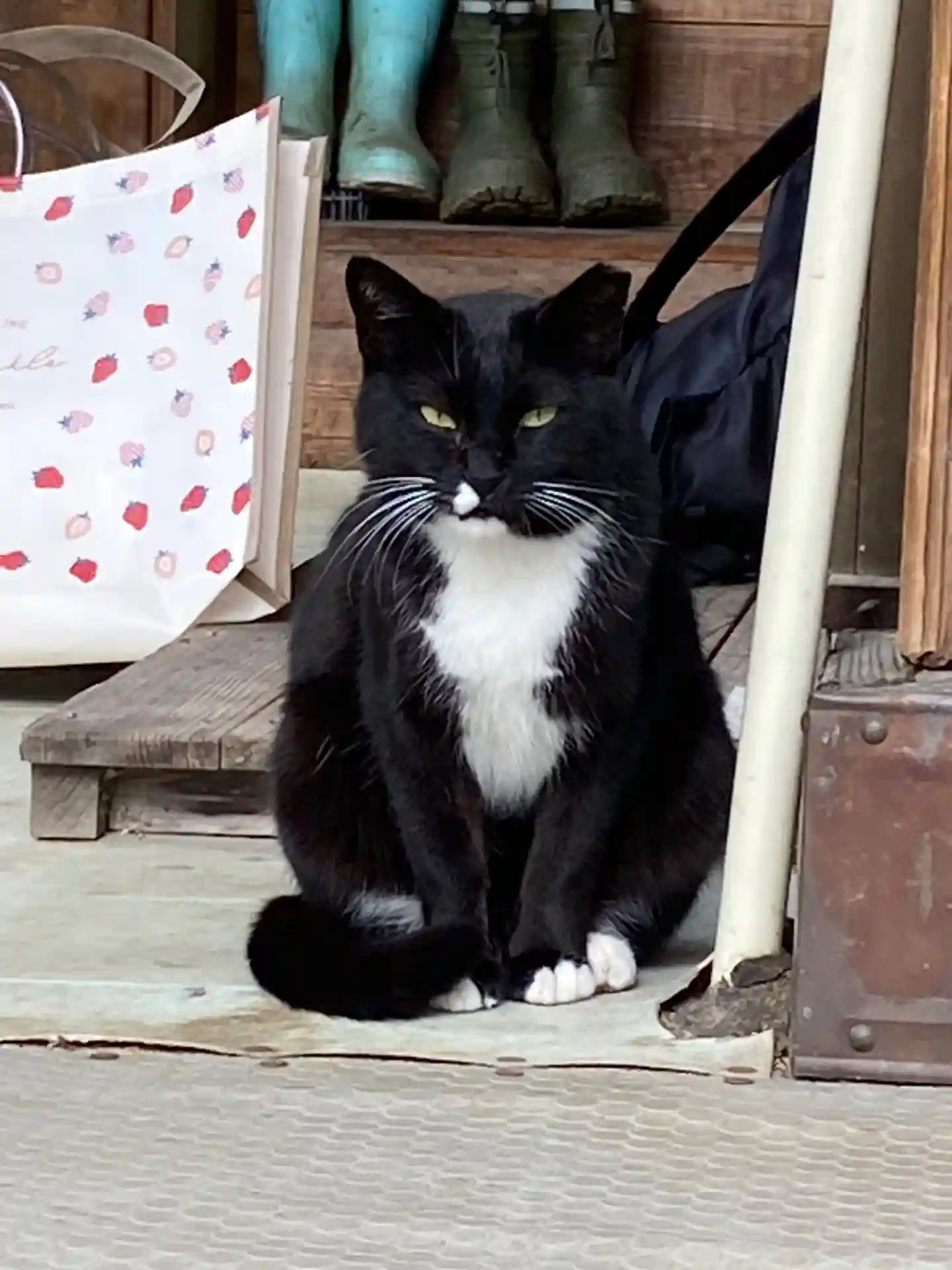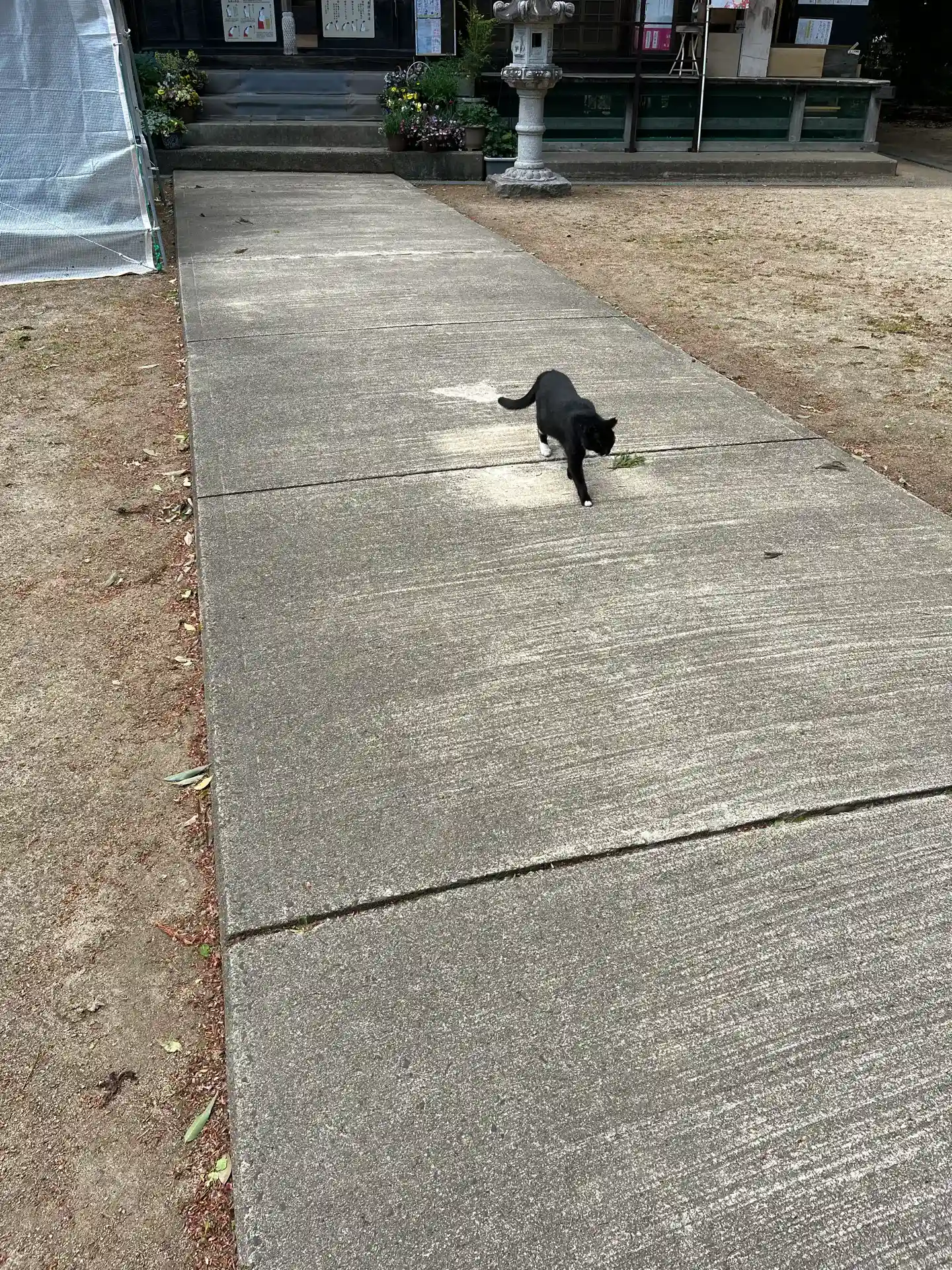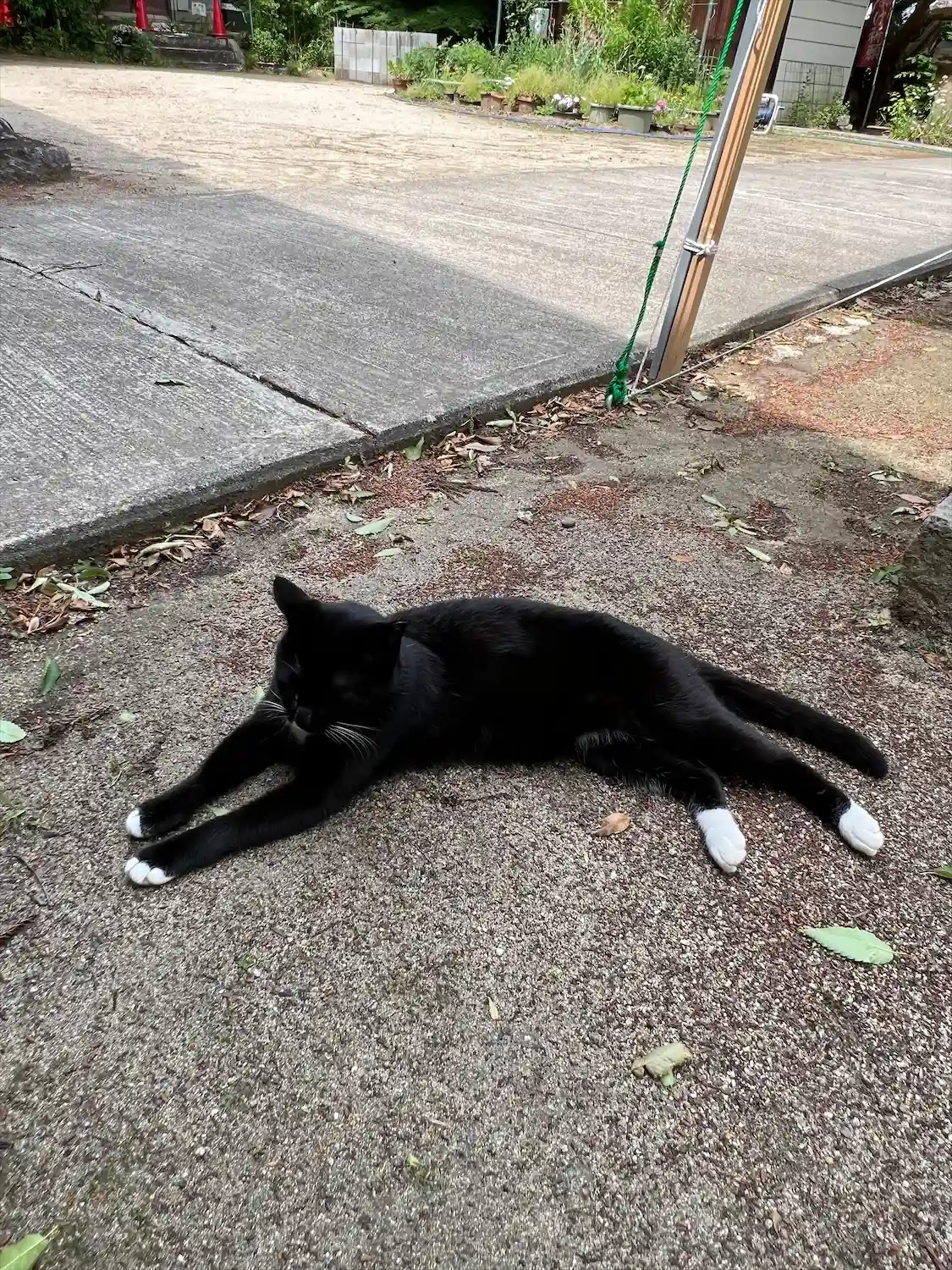 お参りして振り返ると白黒の猫さんが。こちらで可愛がら…
