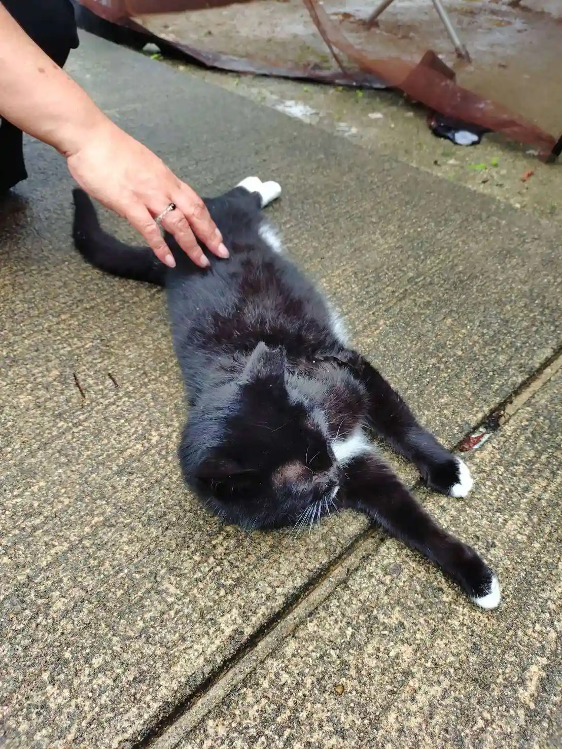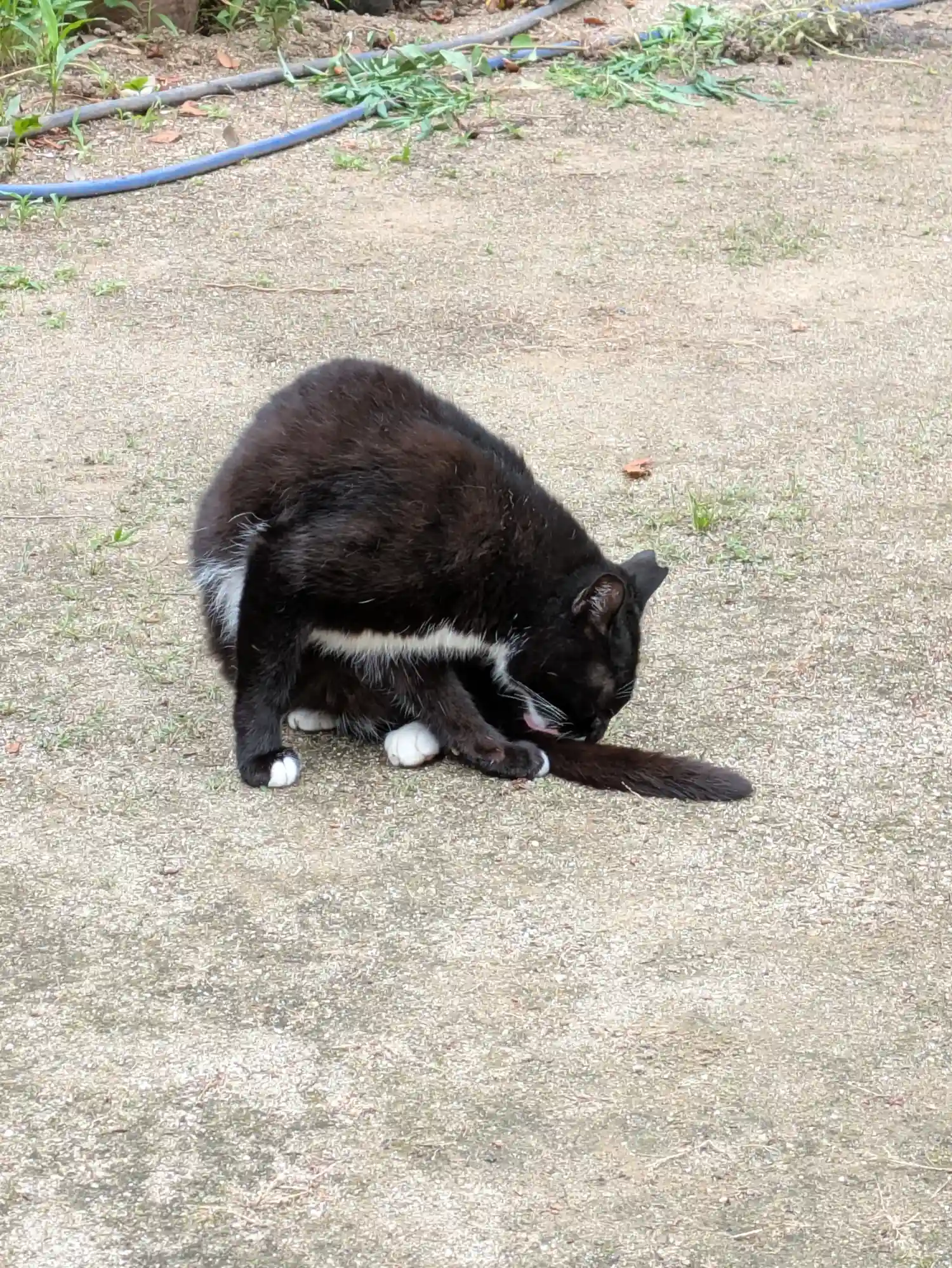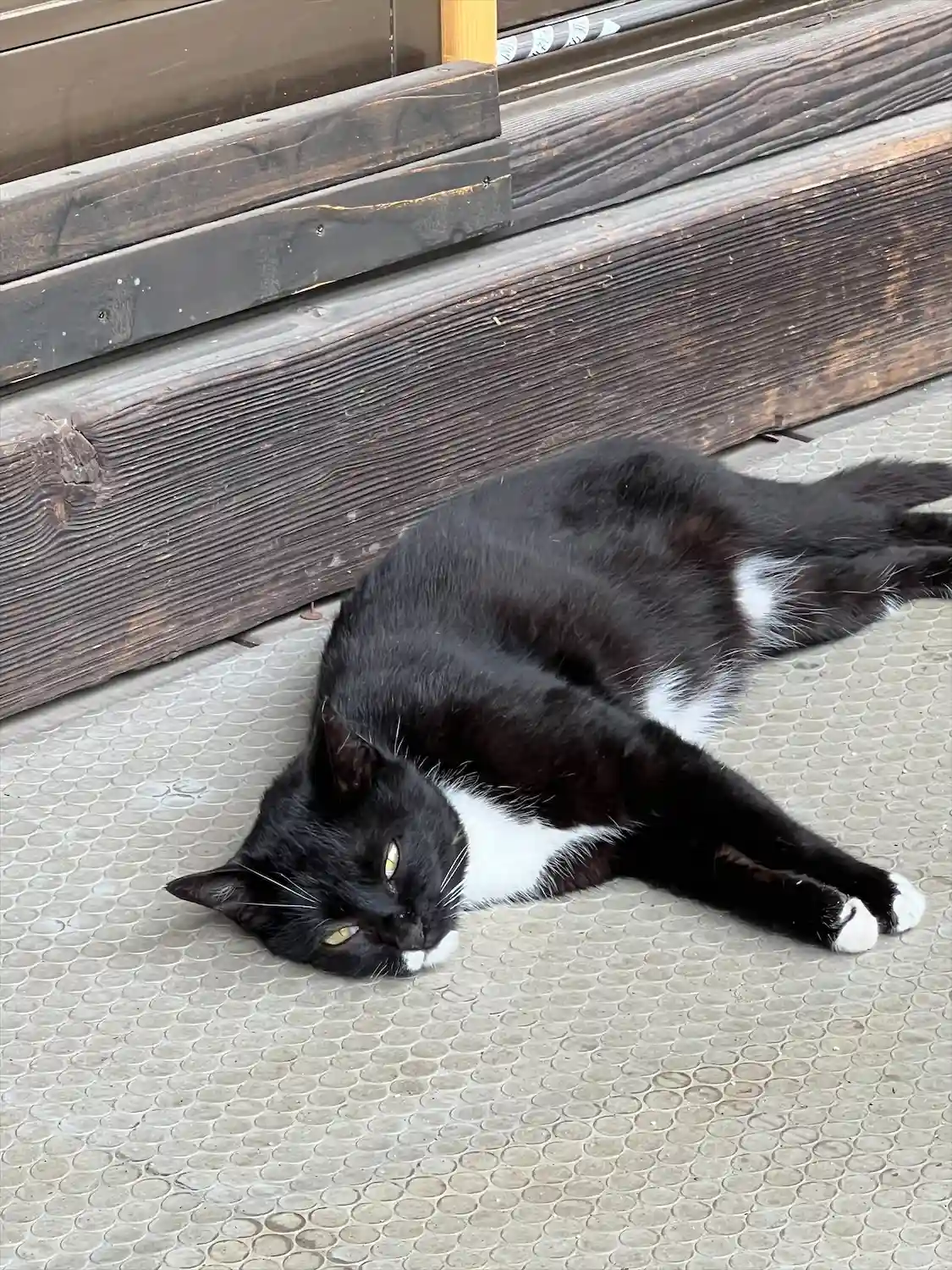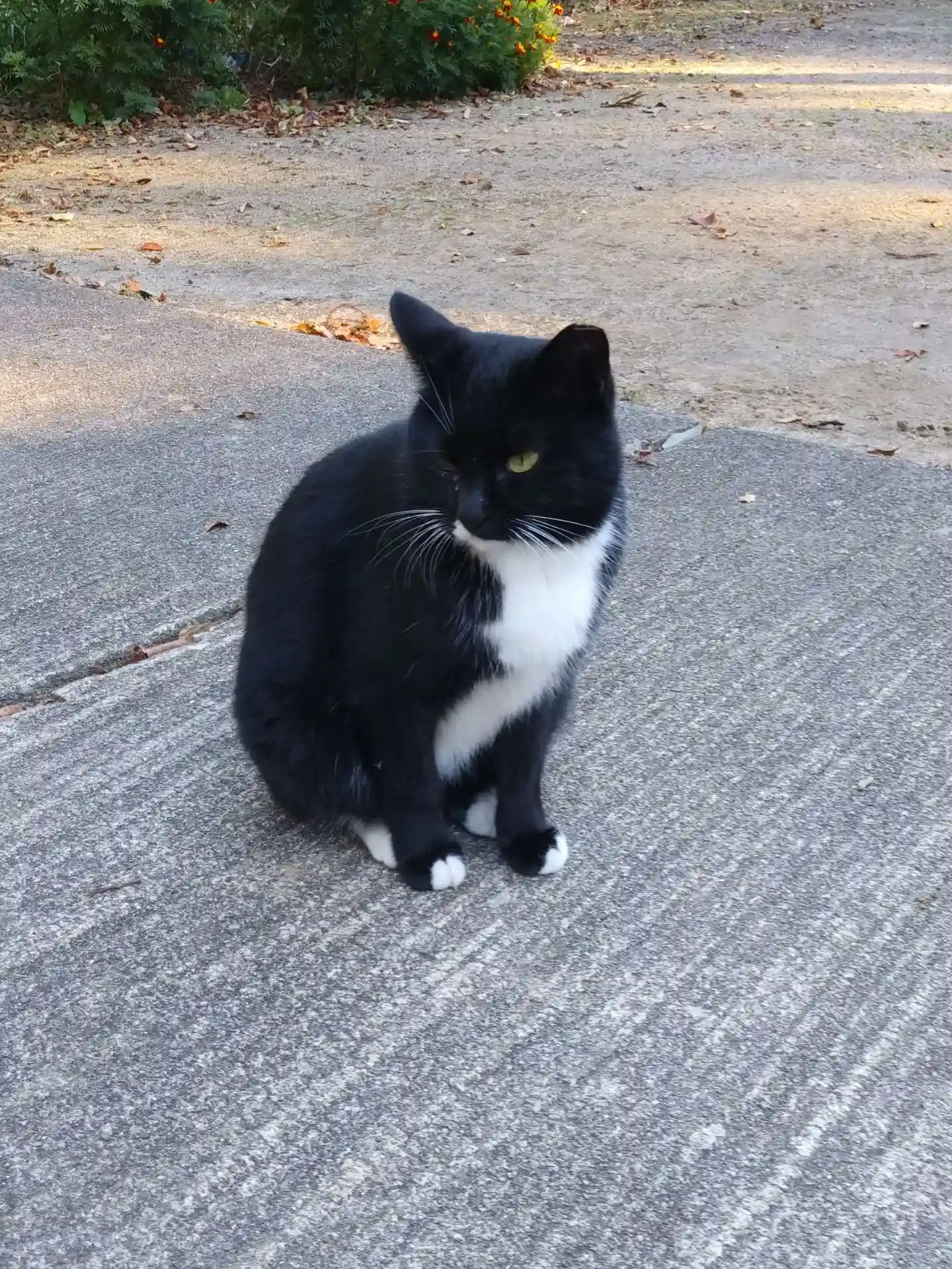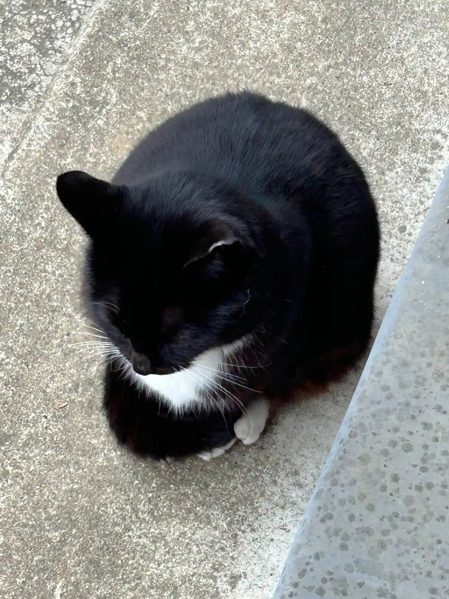 お参りして振り返ると白黒の猫さんが。こちらで可愛がら…
