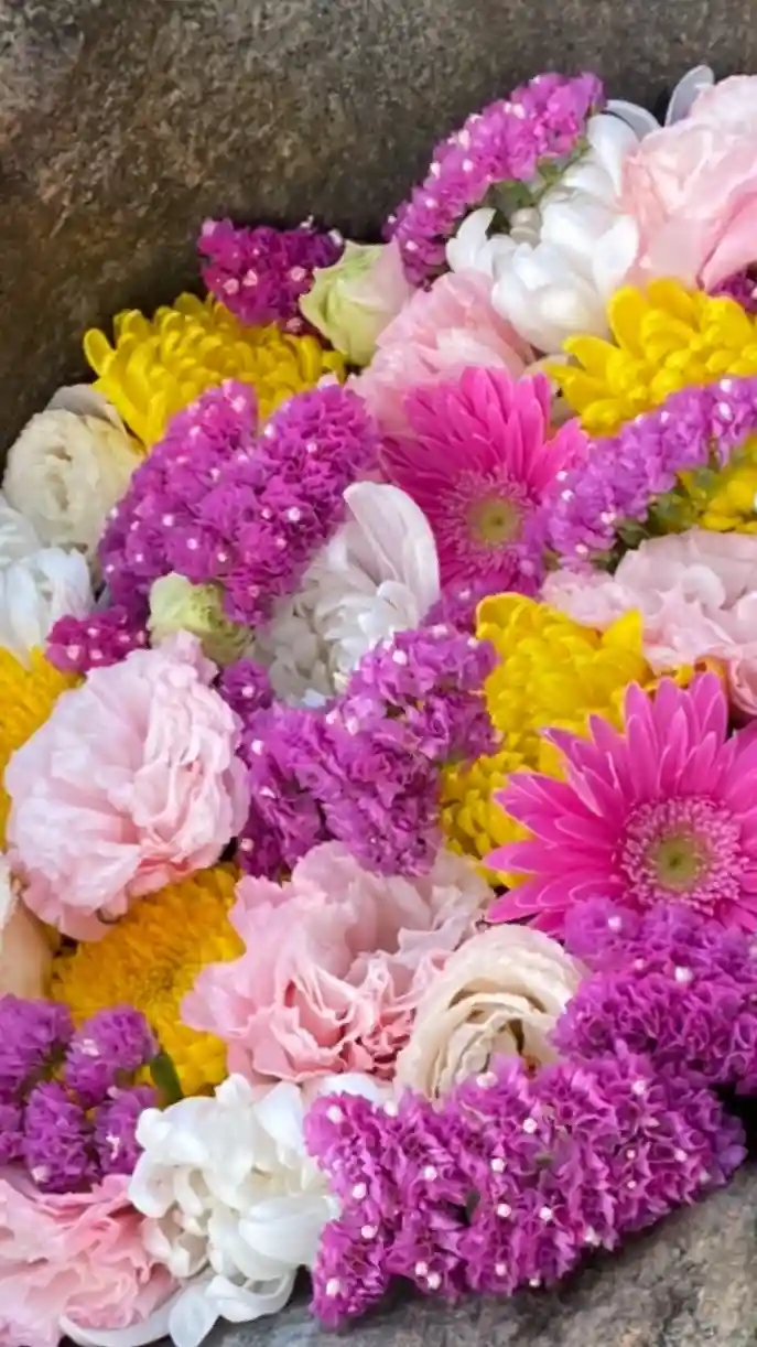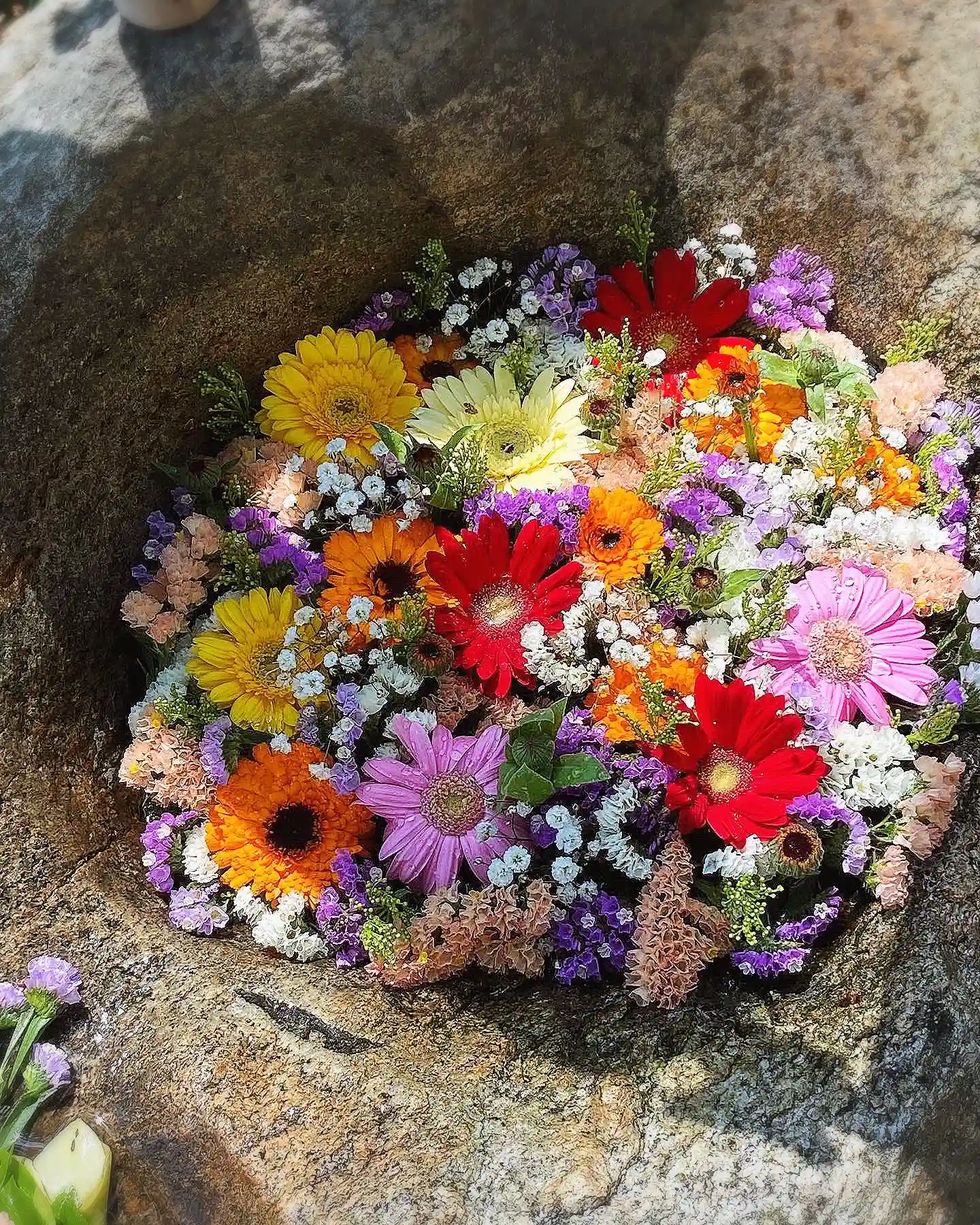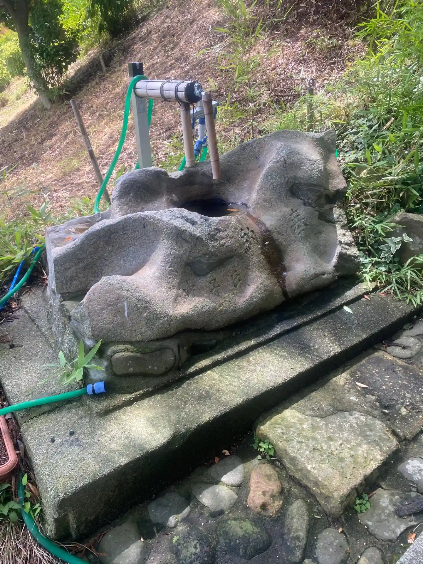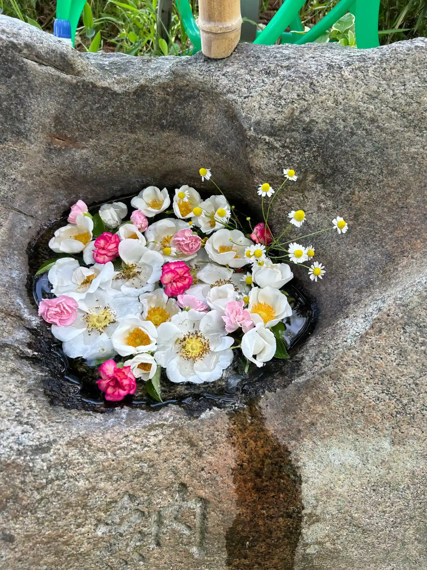🌺花手水🌺階段をのぼりきった所の手水石 《市川秀香先生》に生けて頂きました。