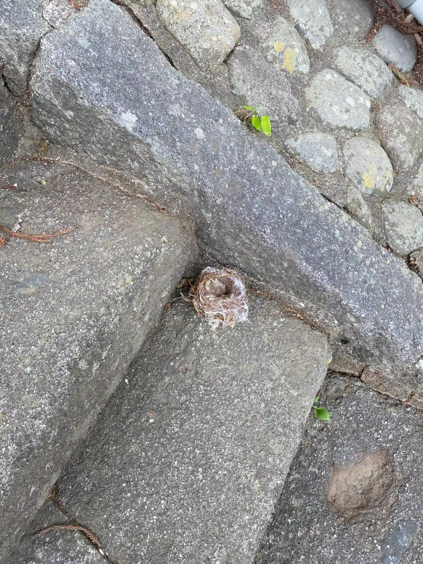 階段に鳥の巣🪺が落ちてました。風が強かったので、木🌲から落ちて来たのですね。小鳥が可愛い😍声で鳴い…
