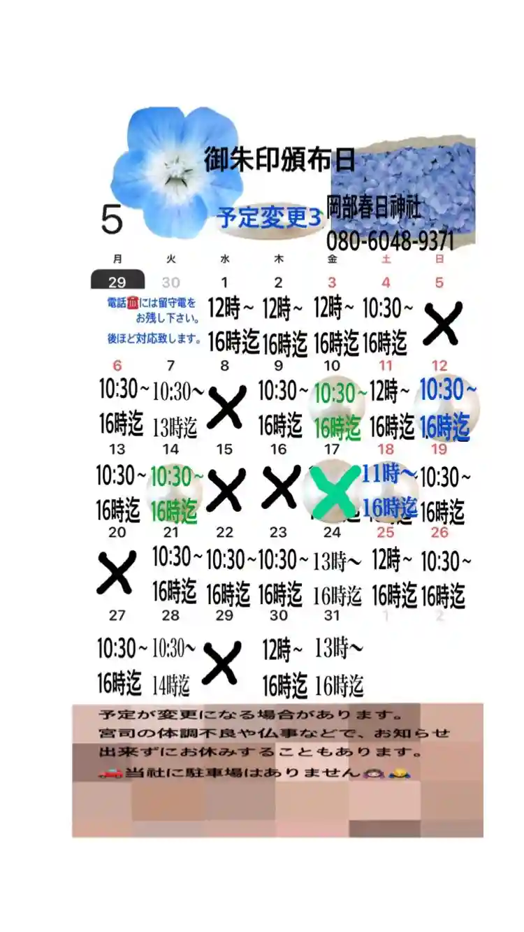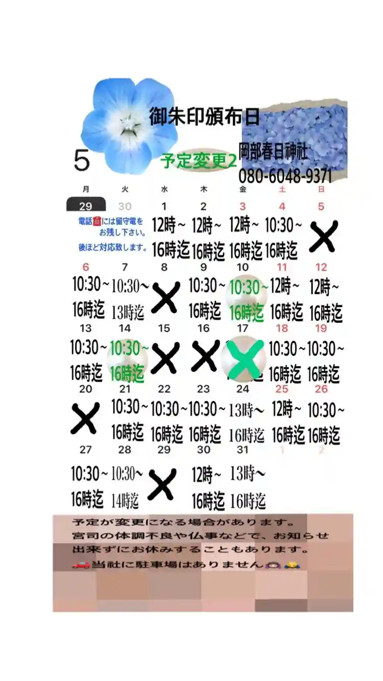5月の御朱印頒布日の変更です。予定を立てて頂きました方には、申し訳ありません🙇🏻♀️
