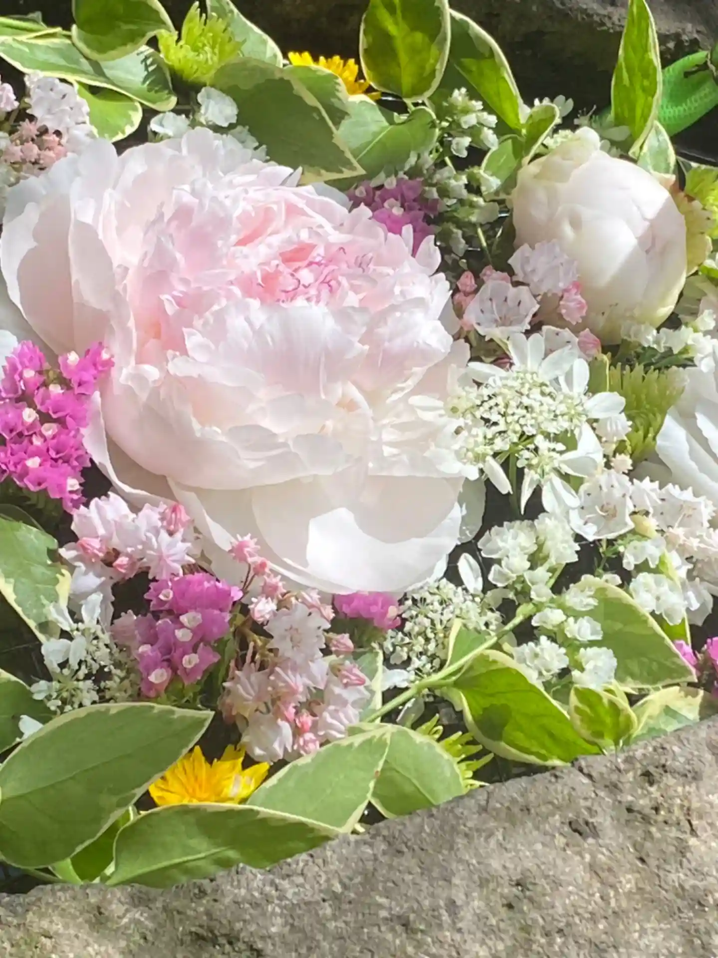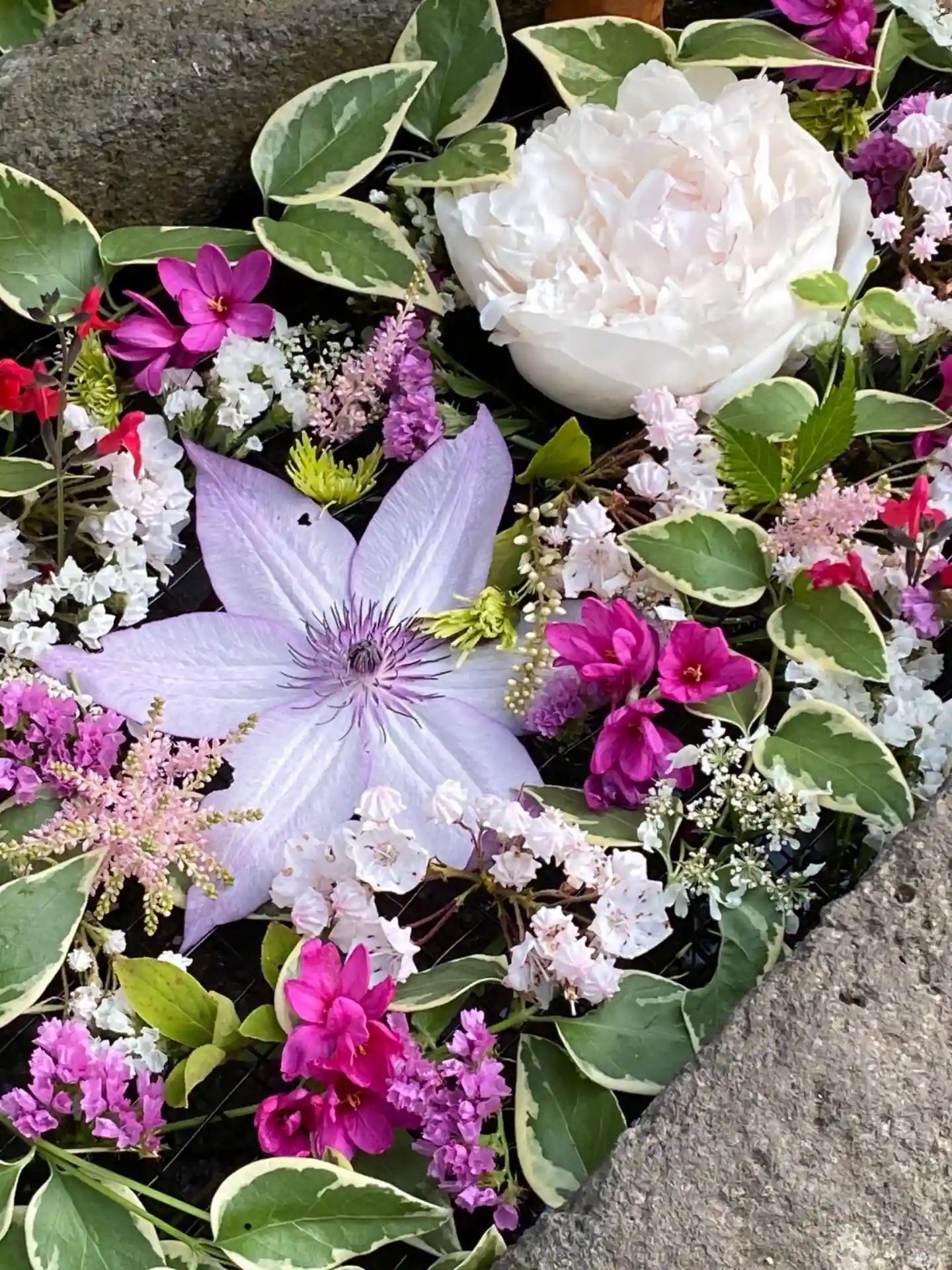 シャクヤク、クレマチスをメインとした💐花手水を市川教授様に生けて頂きました。