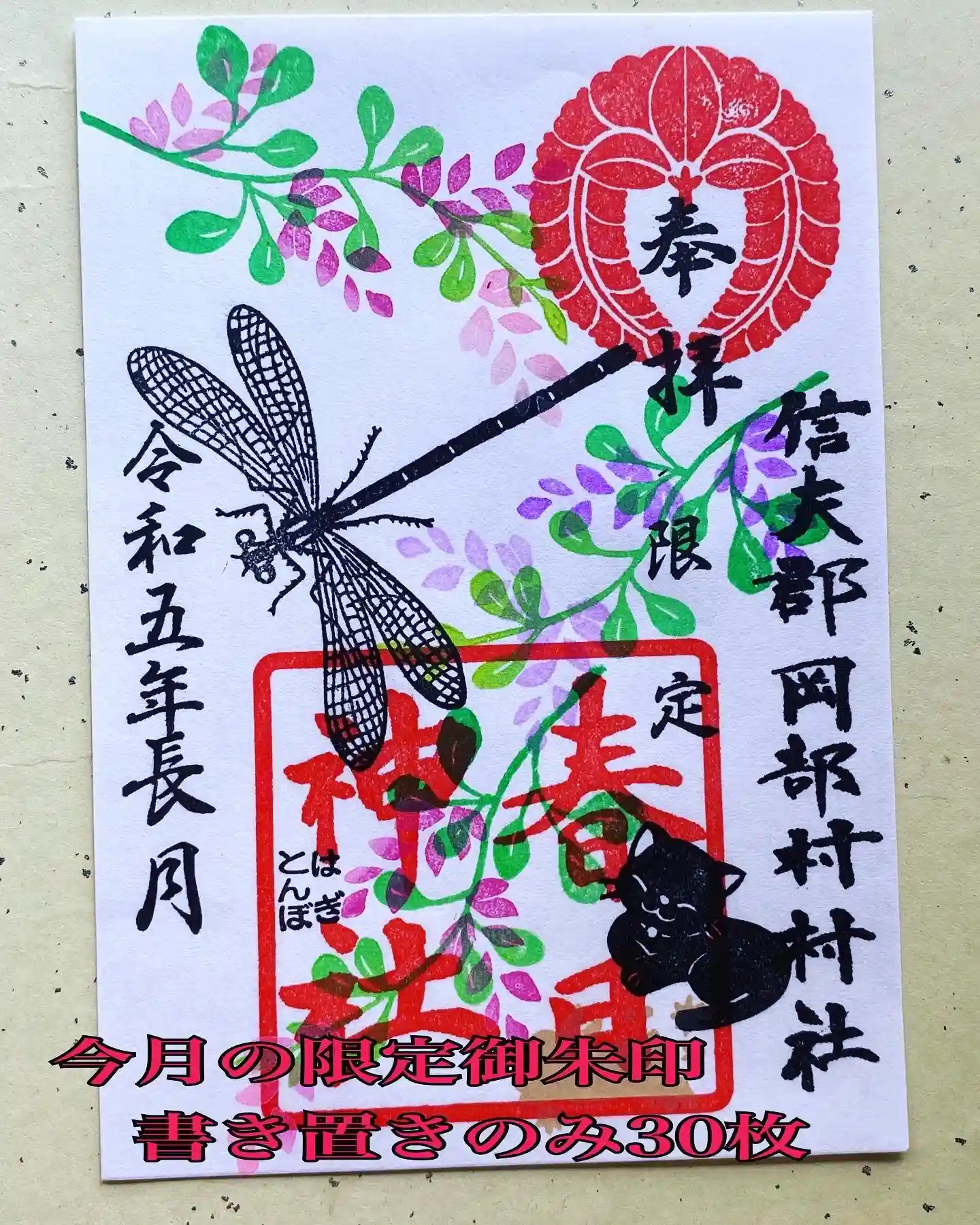 神社猫のクロちゃんが入った可愛い御朱印を頂きました^._.^