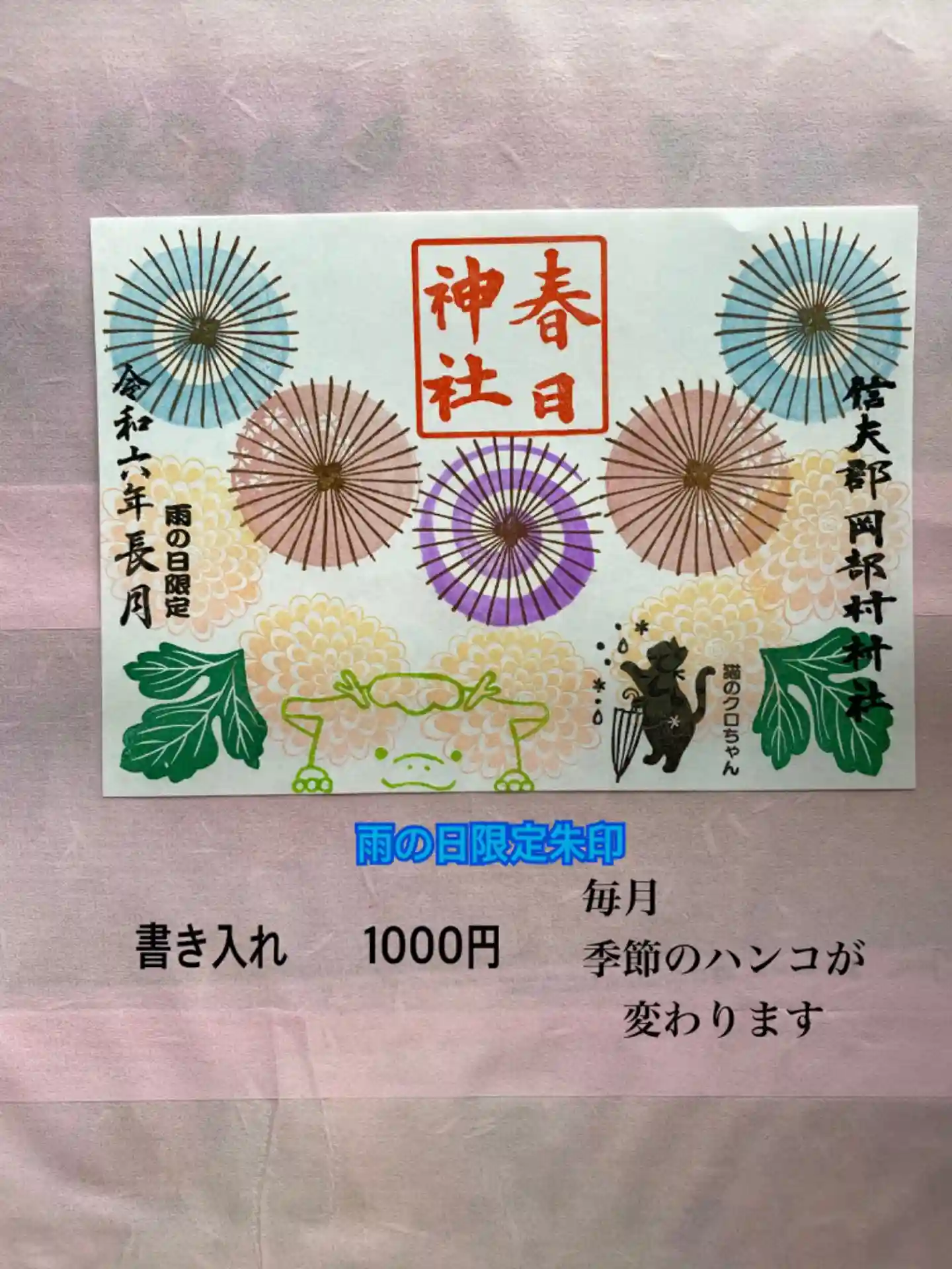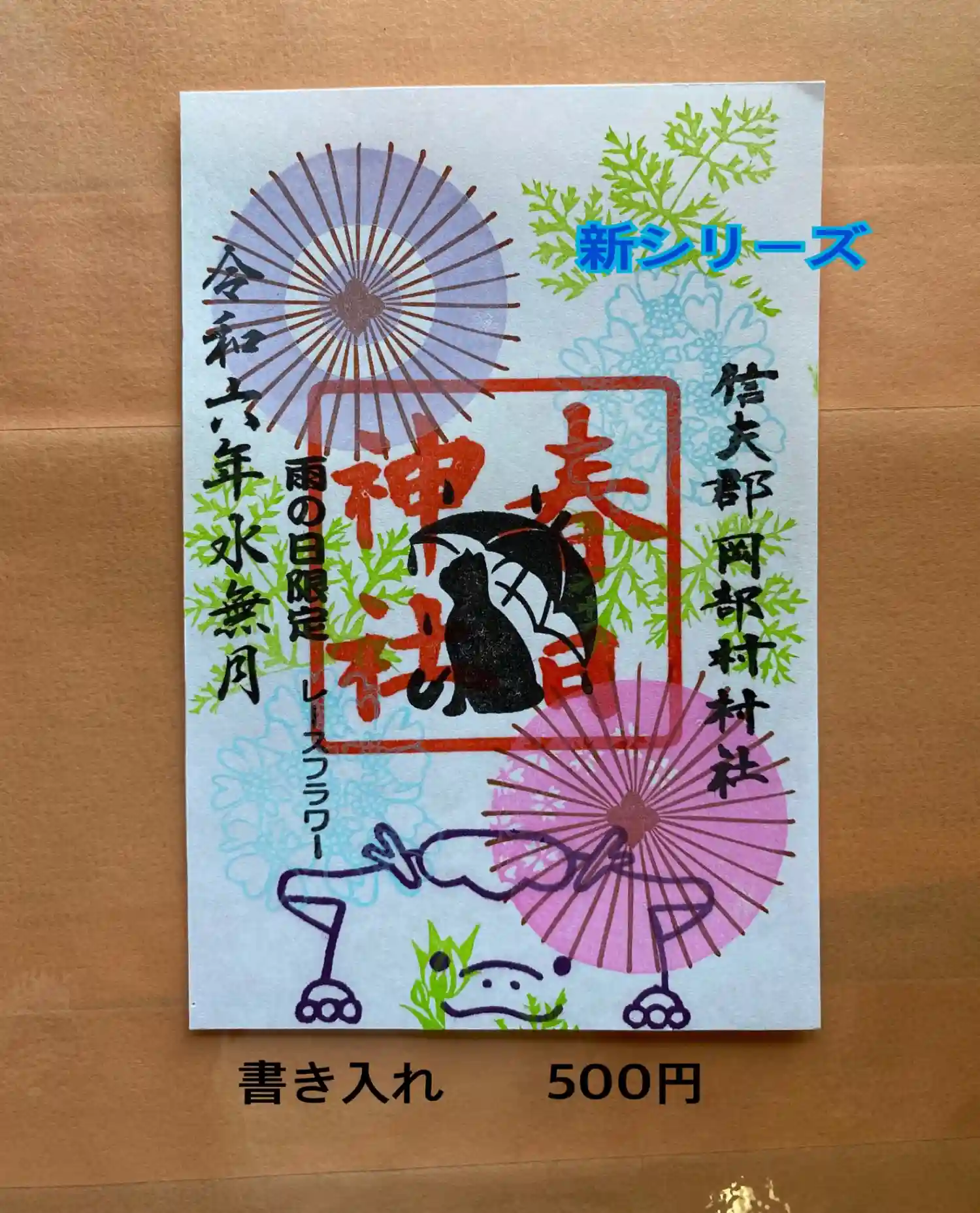 雨の日限定 当社に雨が降った時に頒布する御朱印です。