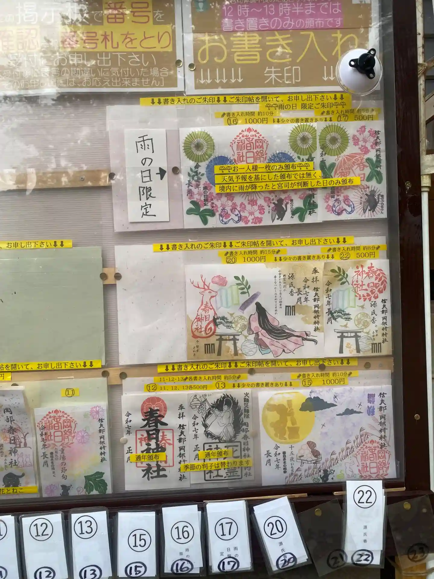 今月は書き入れ日が少ないので、御朱印帖をお預かりしての後日受取 か 郵送をお願い致します。