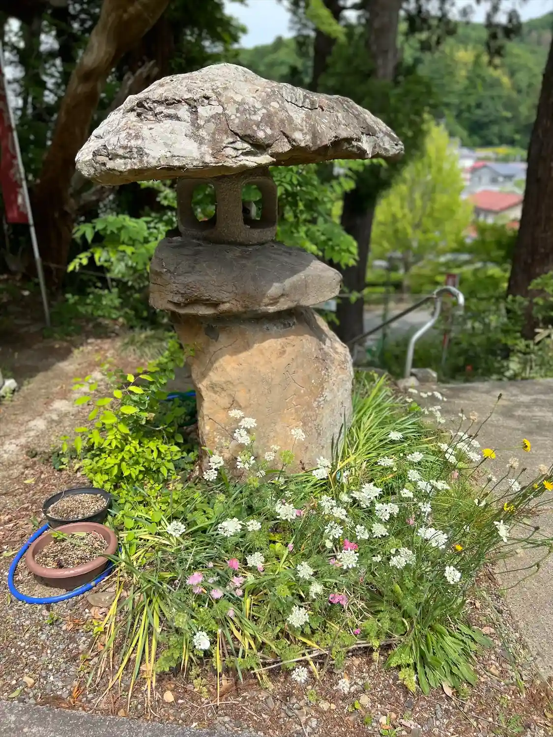境内には草花がいっぱい。雨の中、手入れをなさっていました