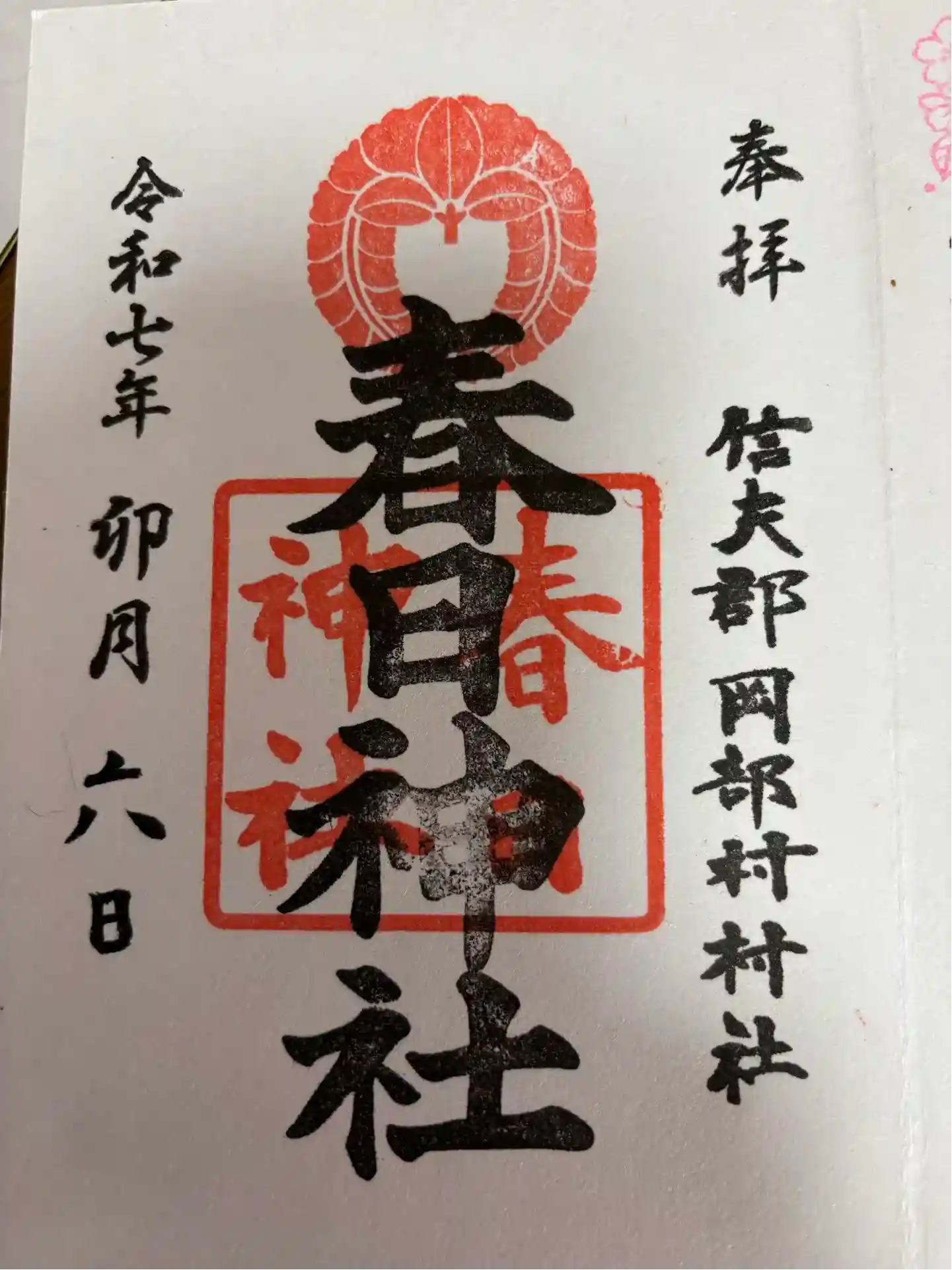 春日神社の御朱印