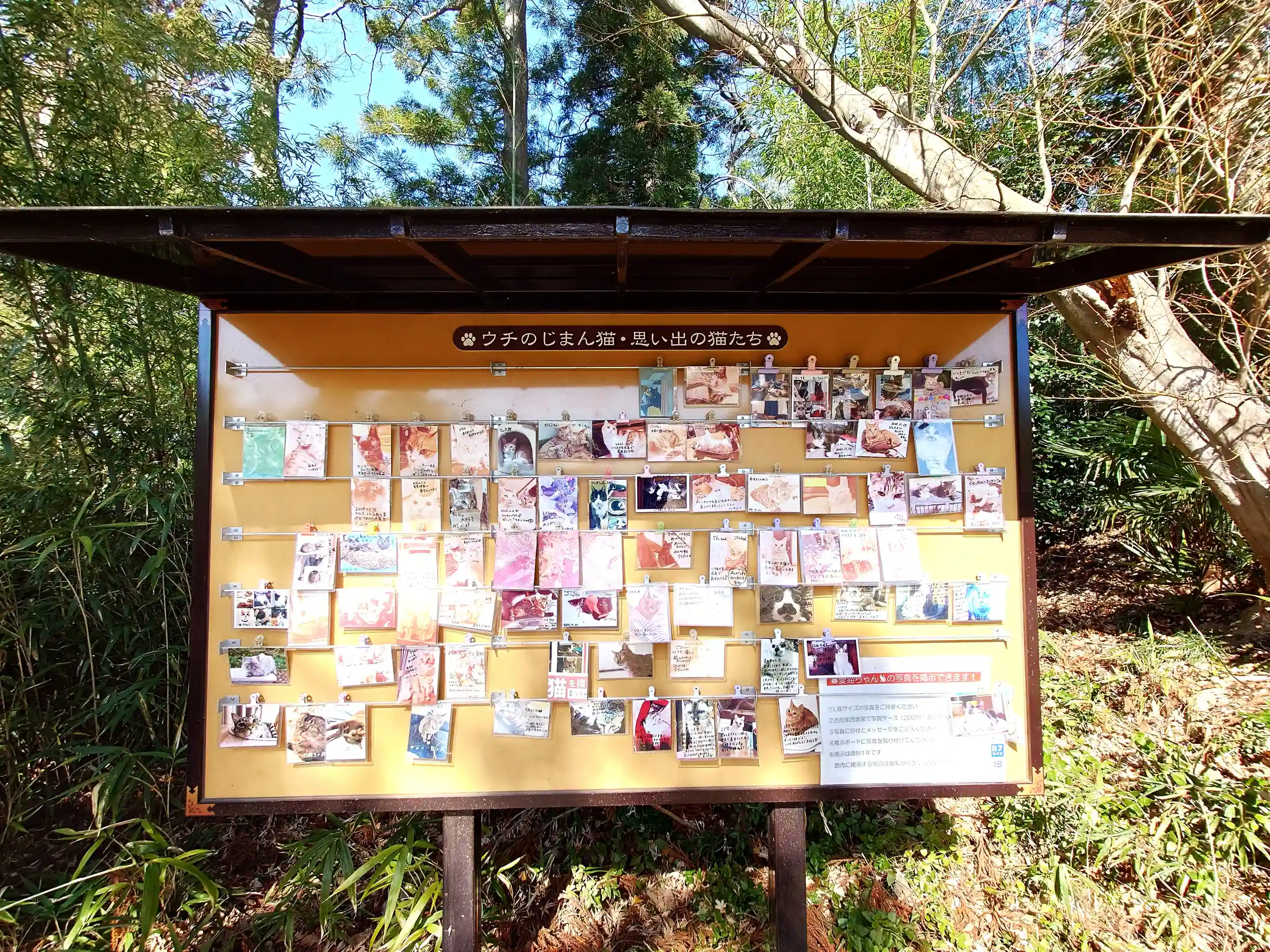 西坂稲荷神社の手前に沢山の猫写真が飾られています。