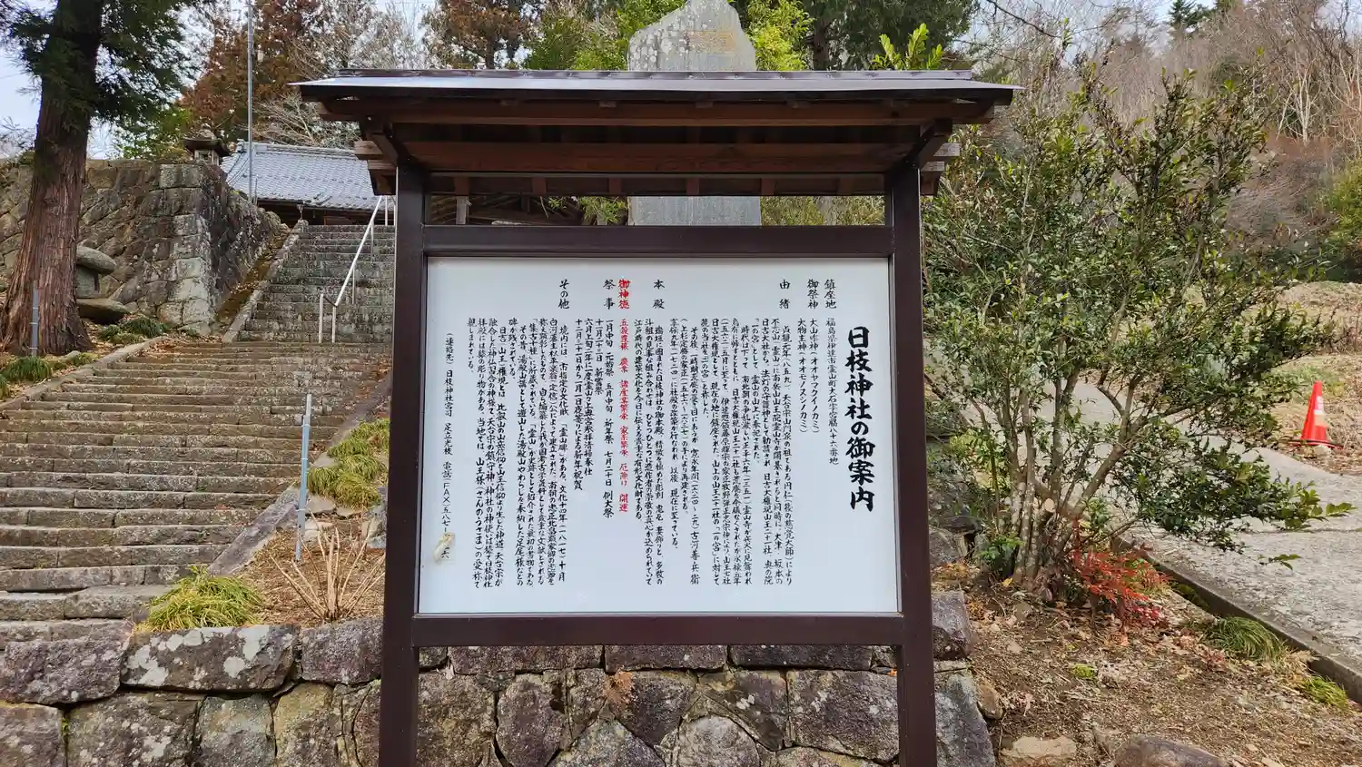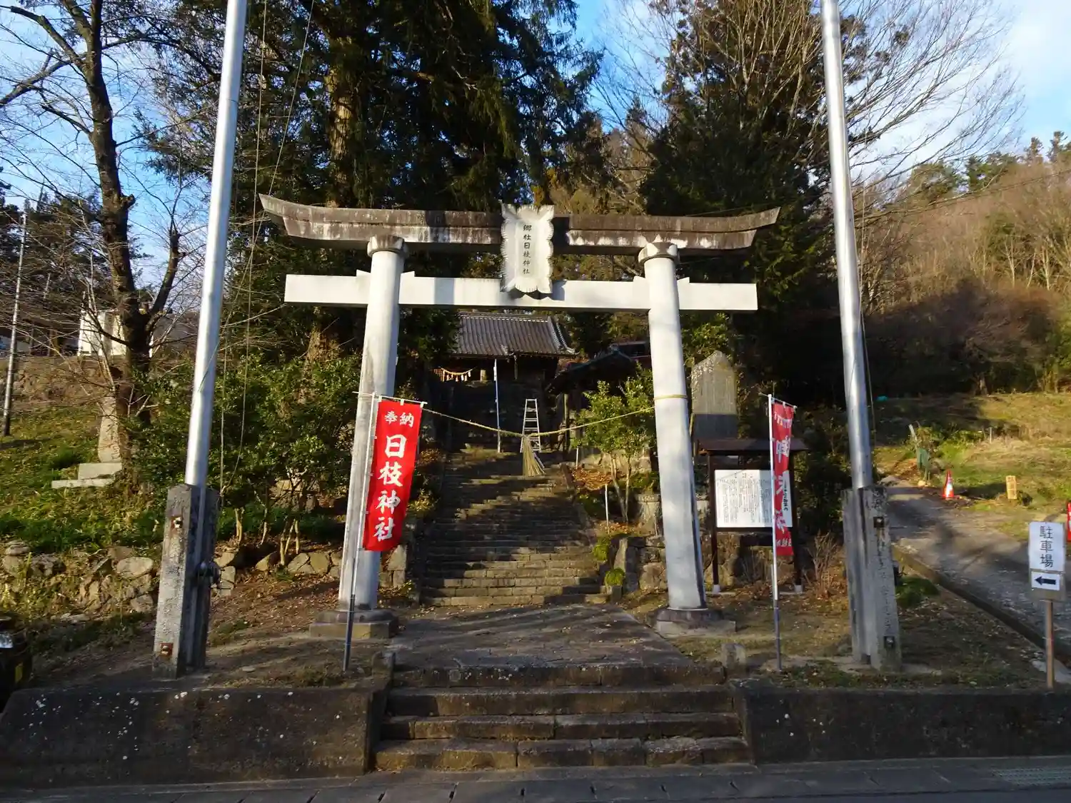 霊山神社から車で2分位の所。鳥居脇に一台位の駐車場有り。鳥居右から登ったところにも3台位の駐車場有…