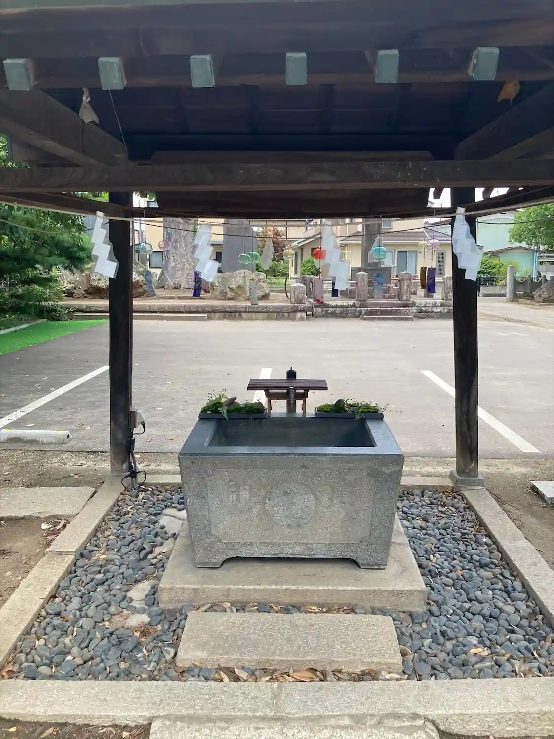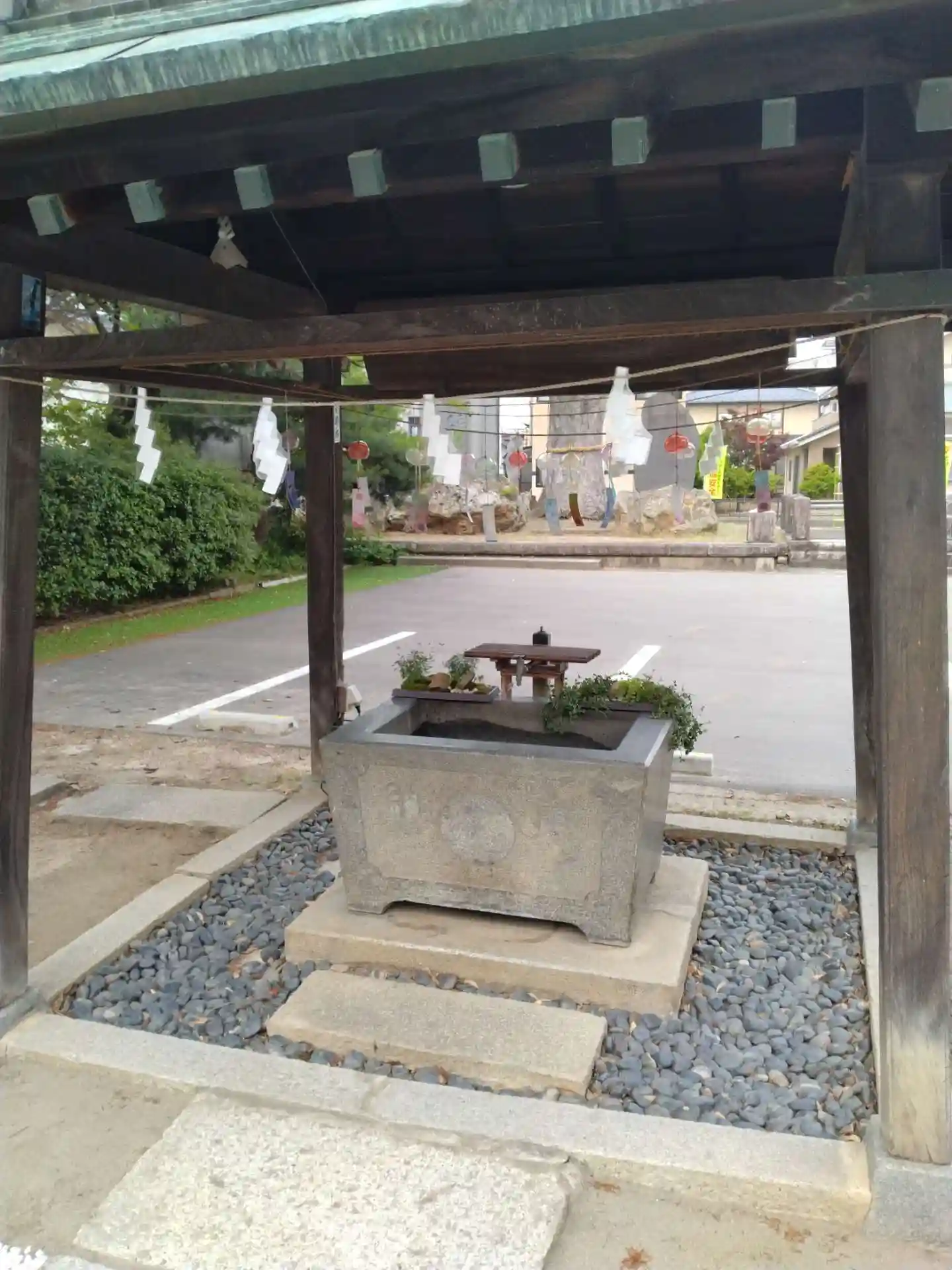 天照神明宮 鳥居から進むと左側にある(手水舎)の様子です(こちらも風鈴の音色が良かったです)