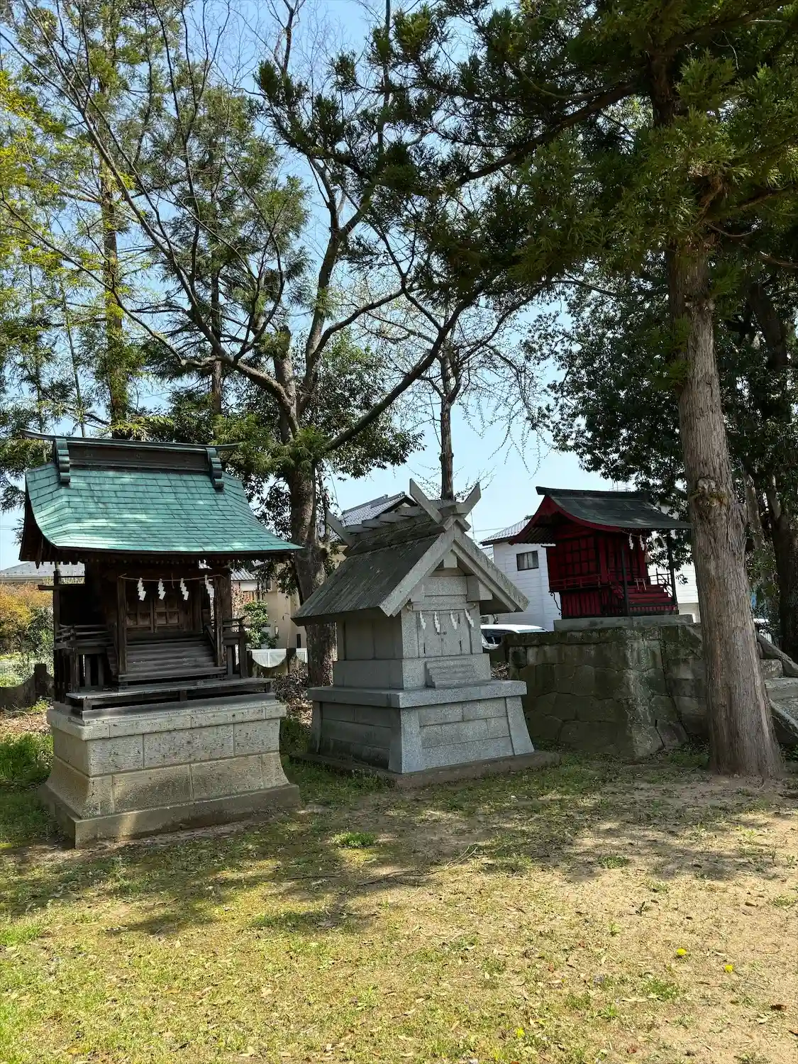 天照神明宮 境内末社(左側:明天神社、中:八雲神社、右側:信達稲荷神社)の様子です