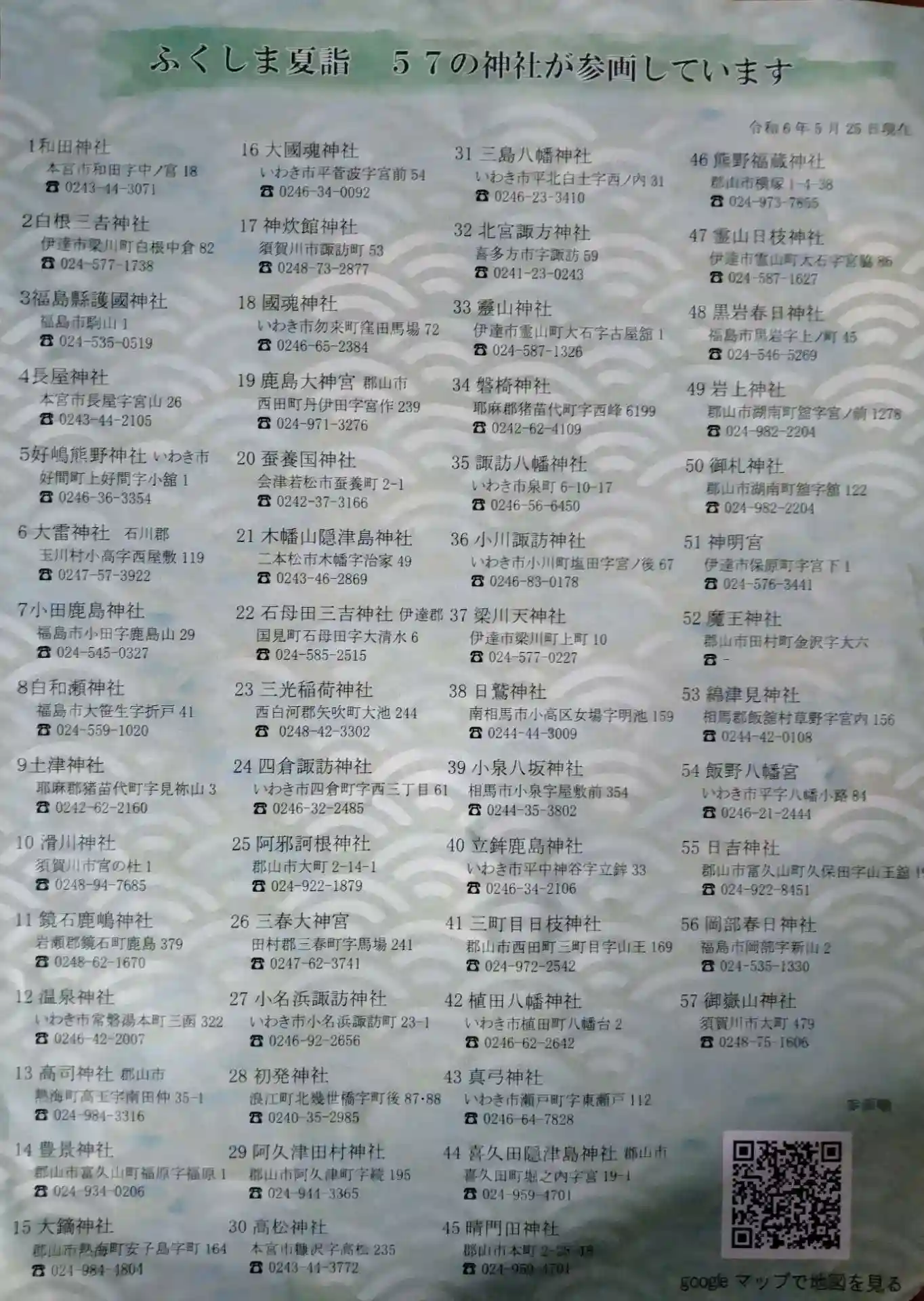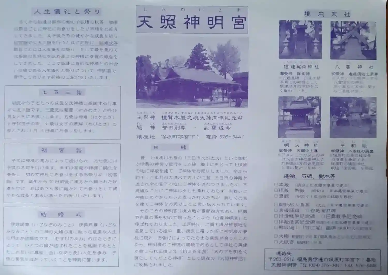 天照神明宮 裏面(57の神社が参画しています 神社名、住所、電話番号が書かれてます