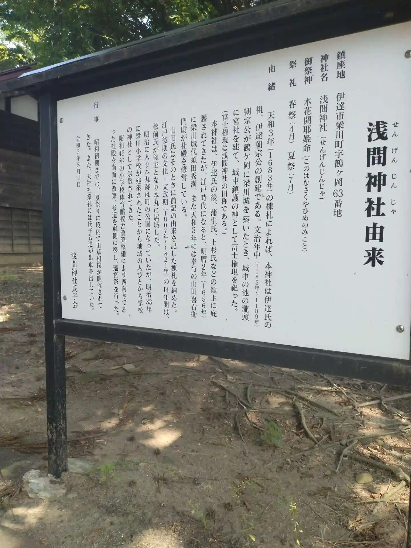 浅間神社 境内にある(浅間神社の由来板)の様子です
