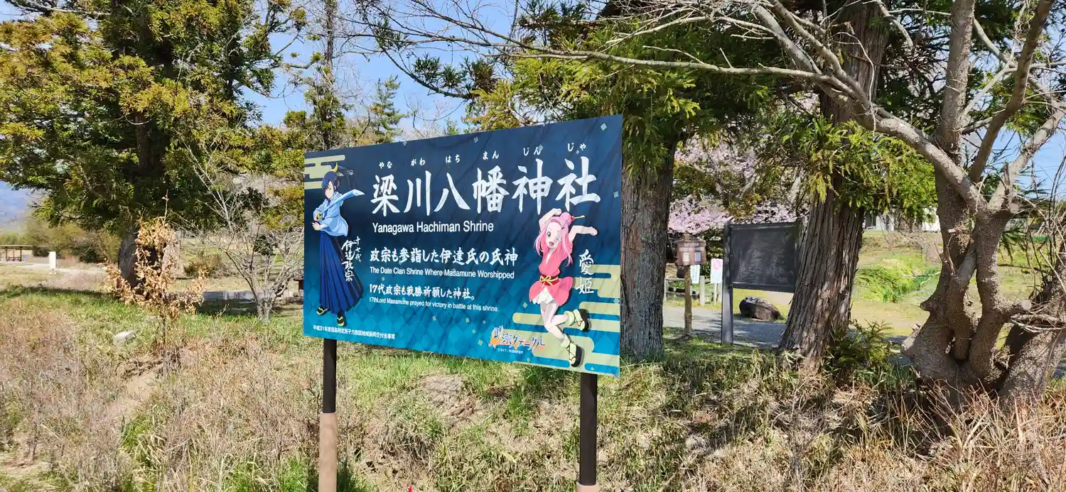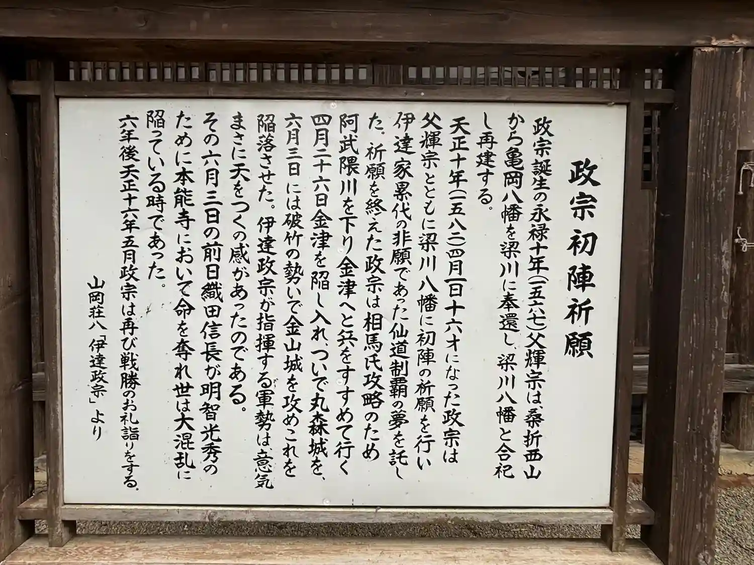 梁川八幡神社 政宗公初陣祈願板の様子です