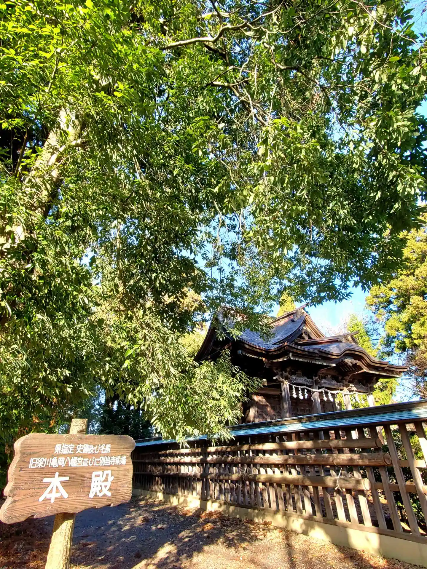 境内一帯が『旧梁川亀岡八幡宮及び別当寺境域』となっており、福島県史跡名勝に指定されております😃