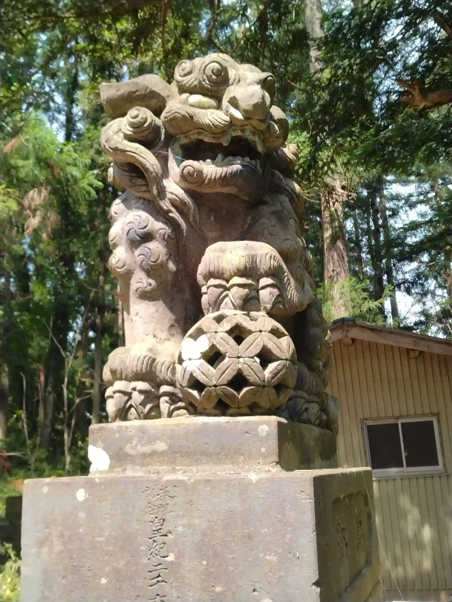 御瀧神社 境内に鎮座する(吽形の狛犬さん)の様子です