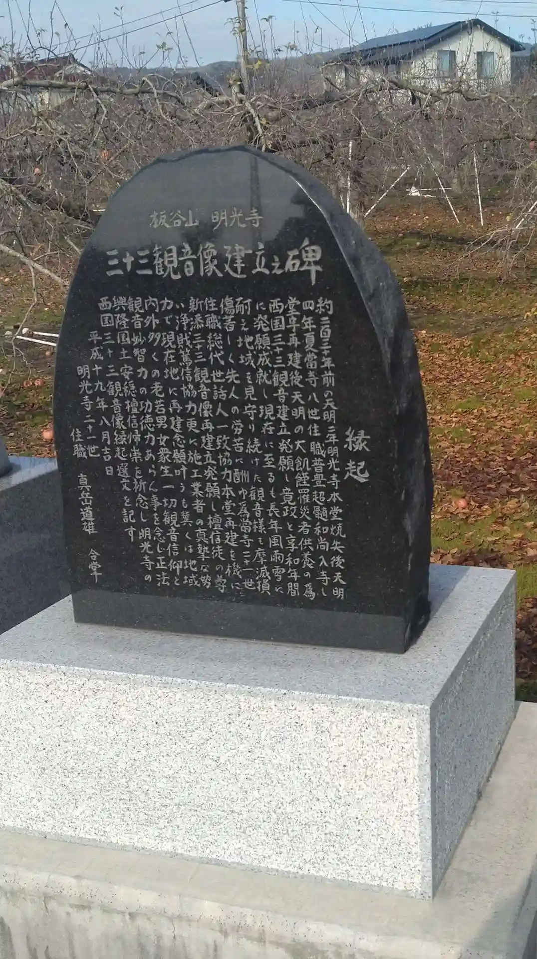 明光寺 三十三観音像設立之碑(縁起)です