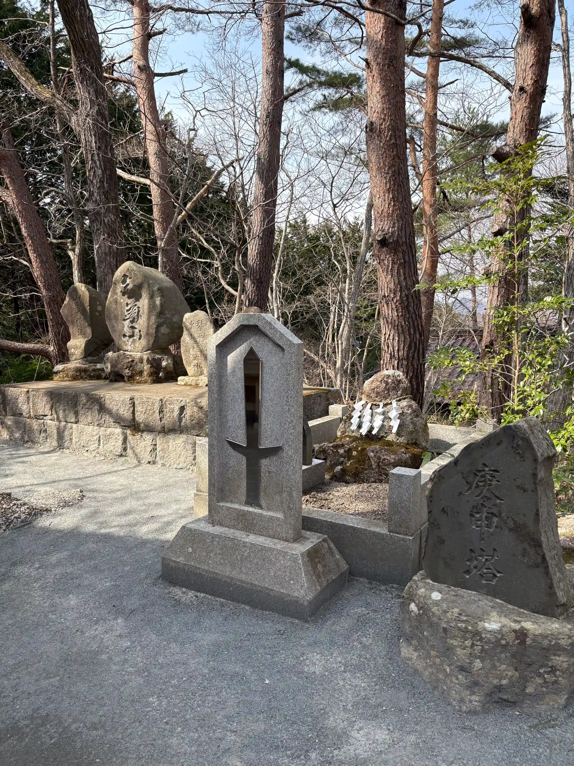 ちょっと離れた所に社号標と