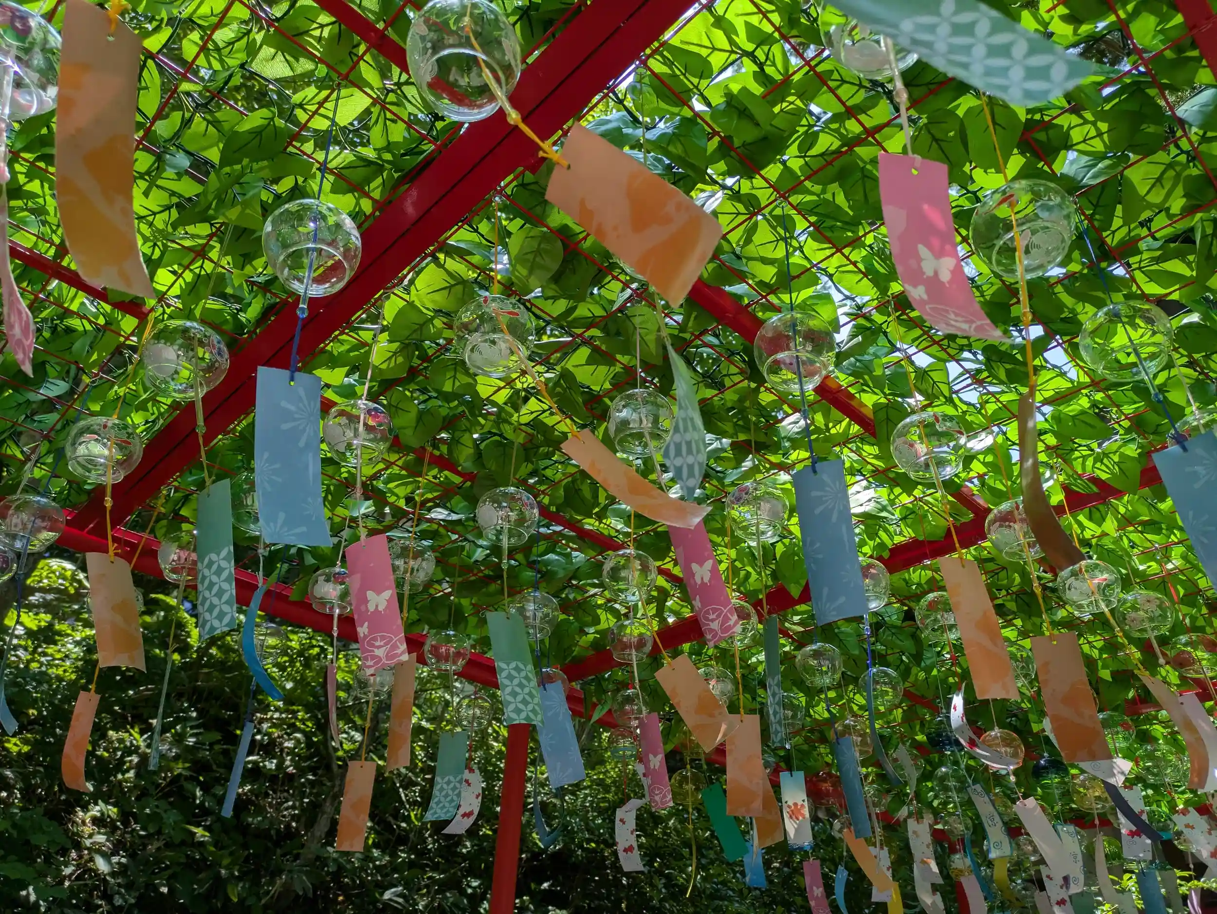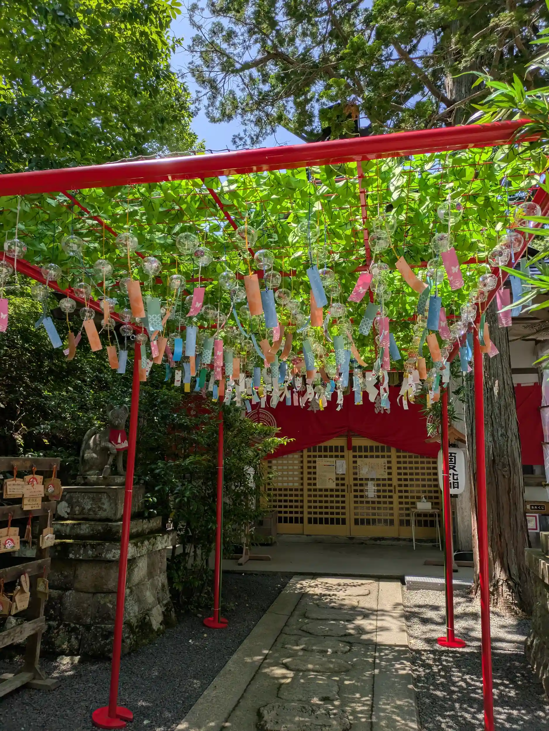 夏詣の期間は拝殿前にたくさんの風鈴が飾られています