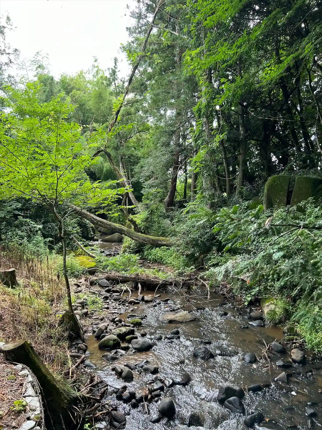 川沿いには岩がゴロゴロとあり