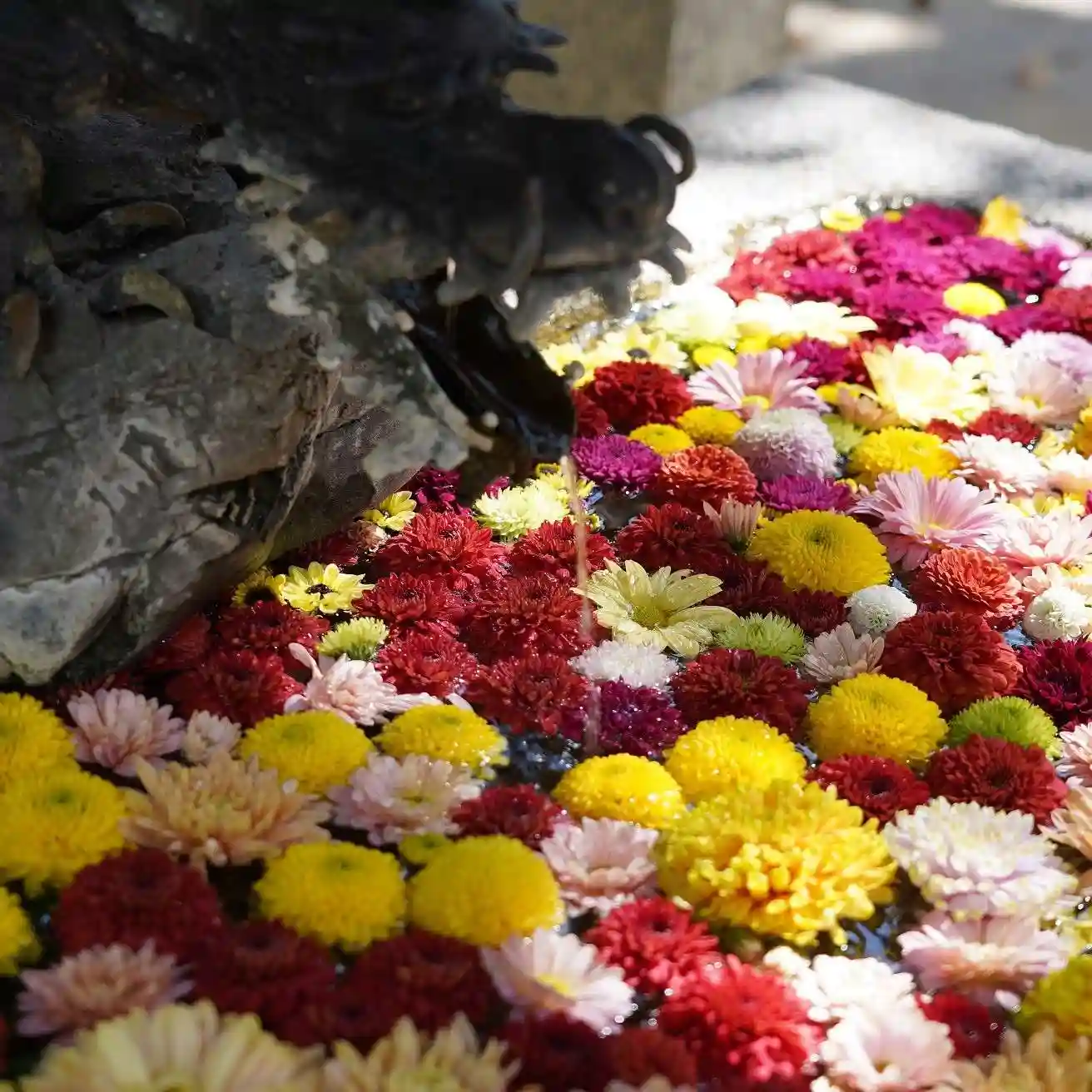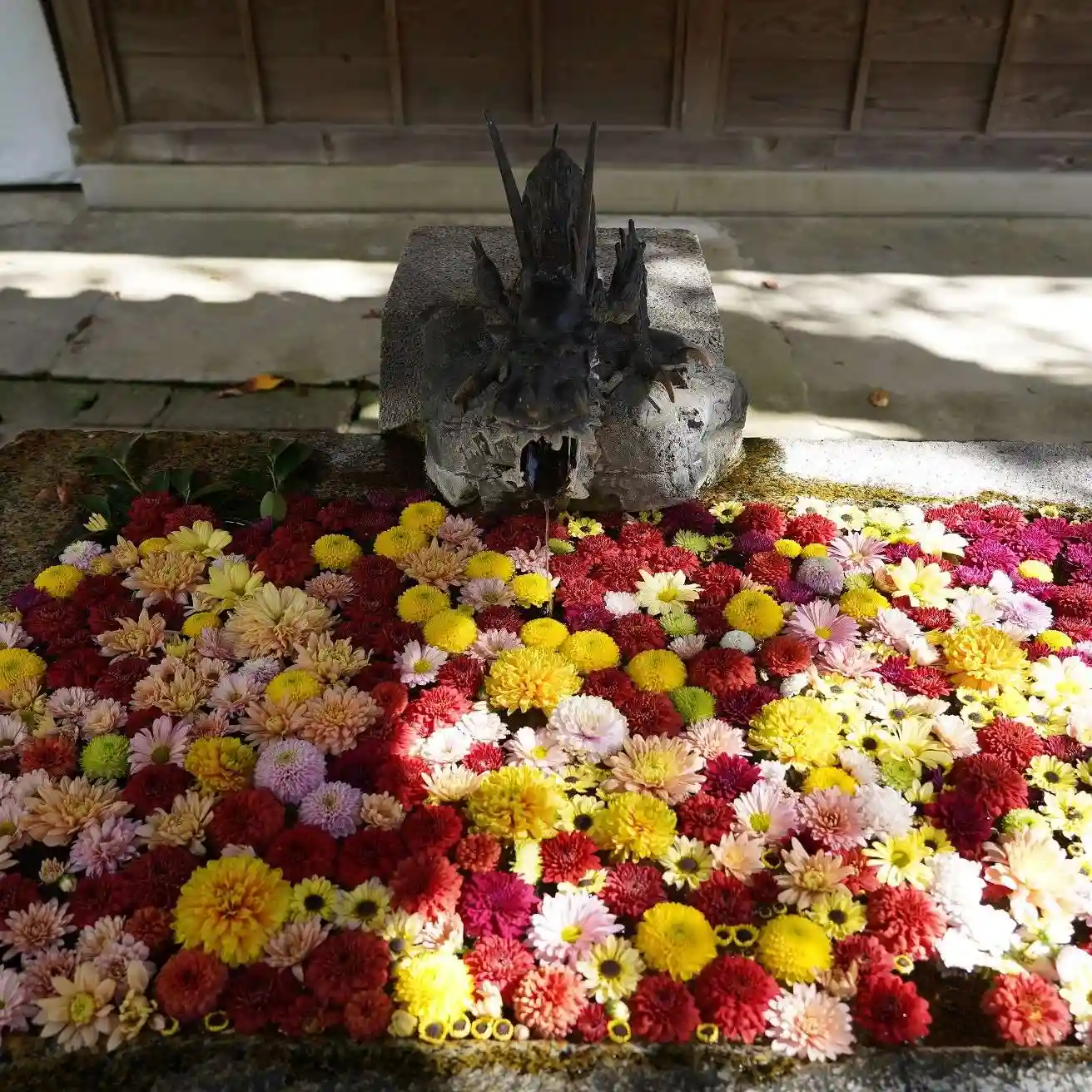 でも、水盤が花で一杯で綺麗でした。