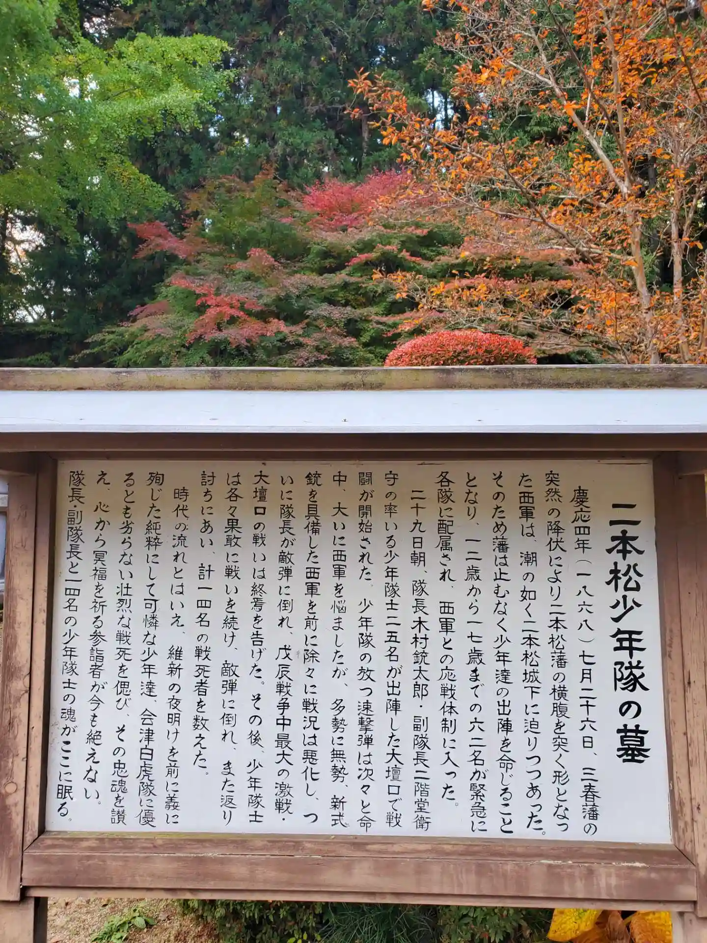 戊辰戦争で戦った二本松少年隊16名の供養塔があります。