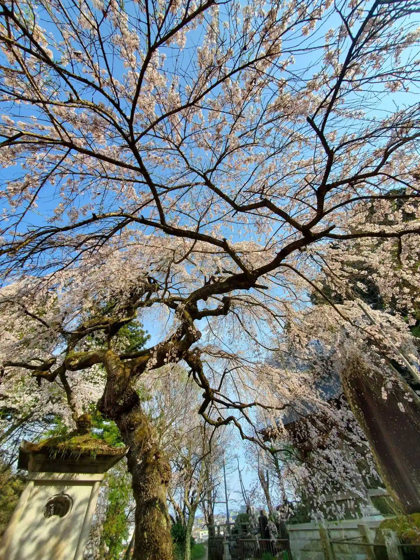 境内の大きな枝垂れ桜🌸が見頃でした😃