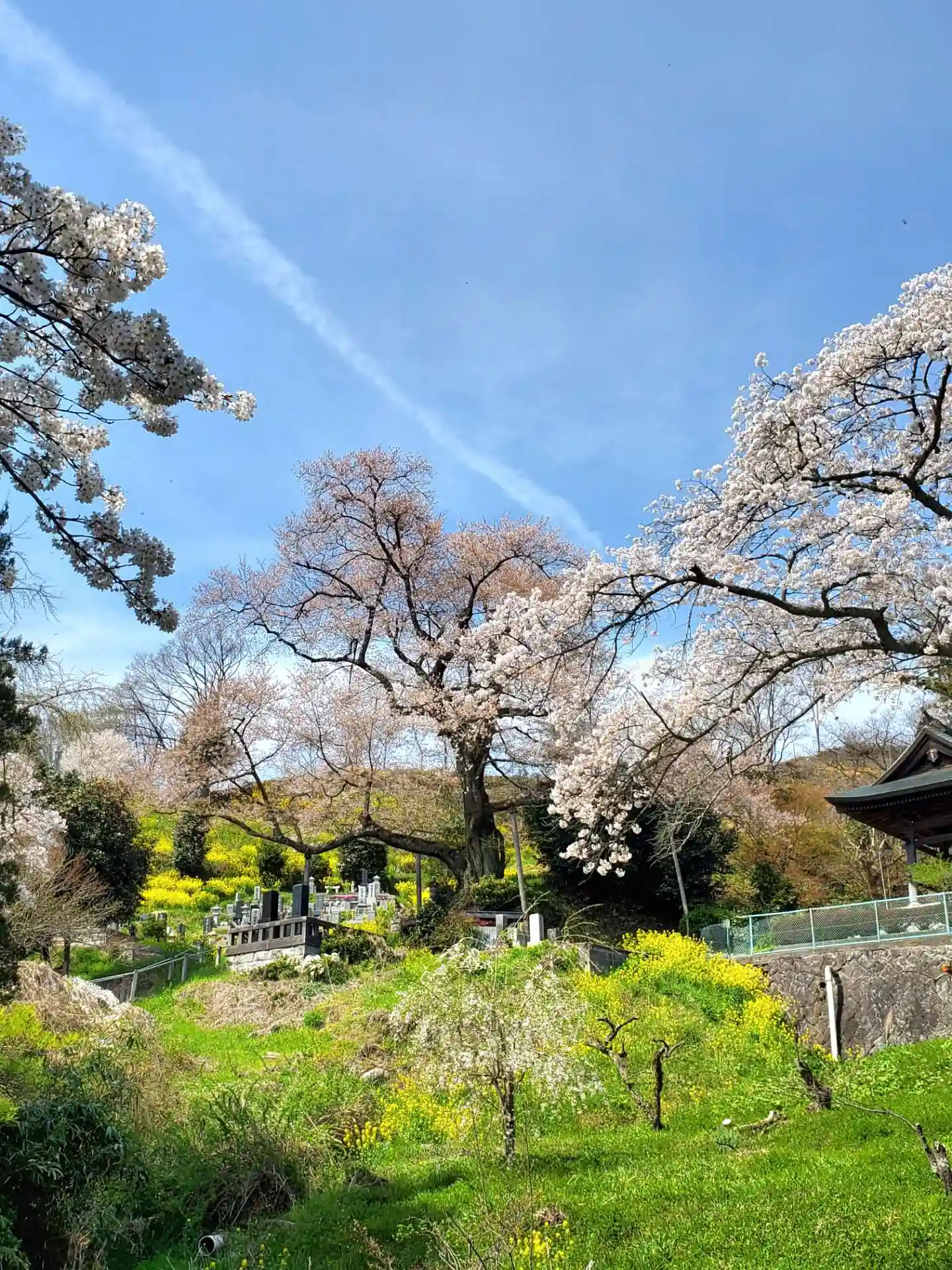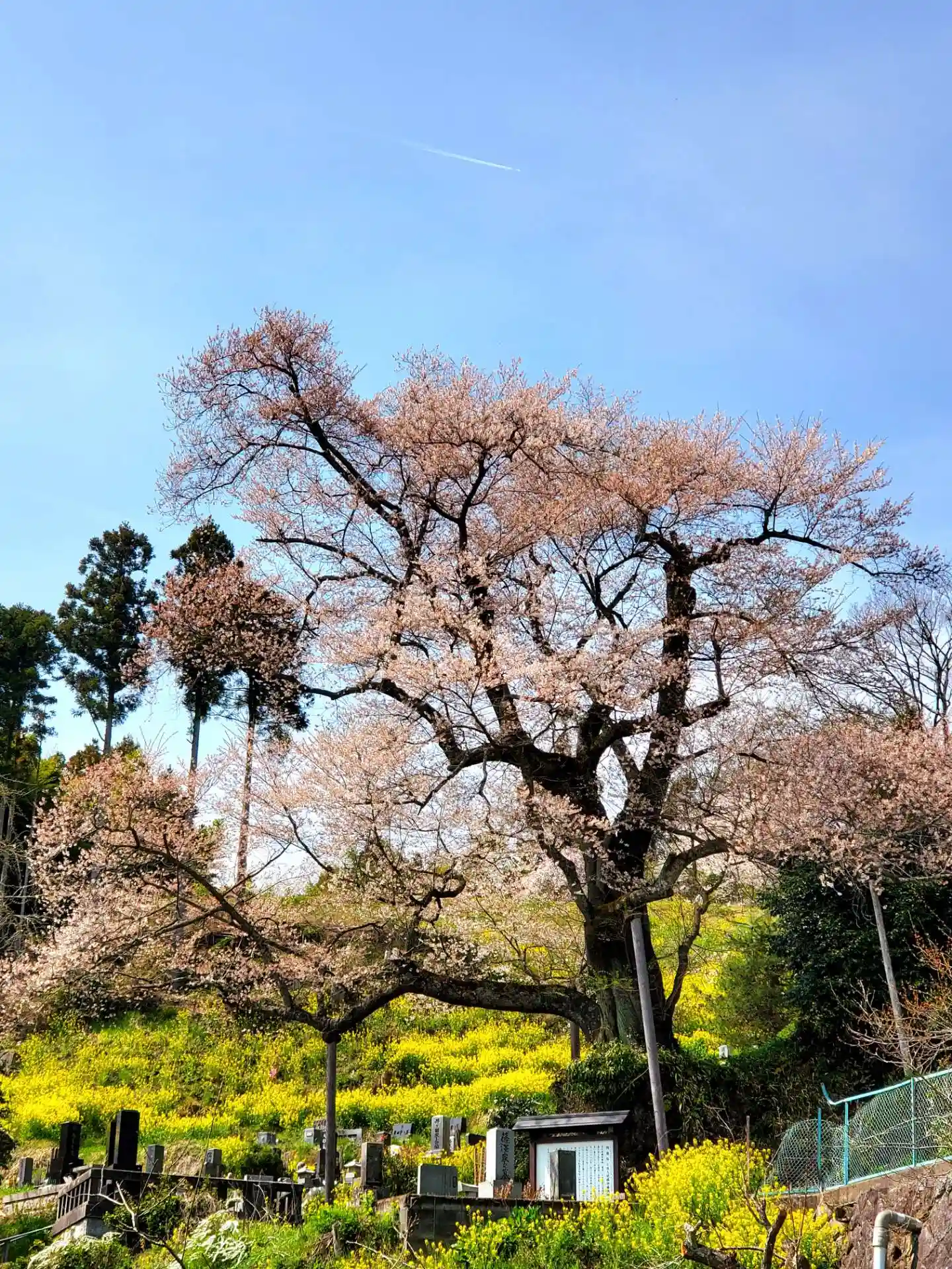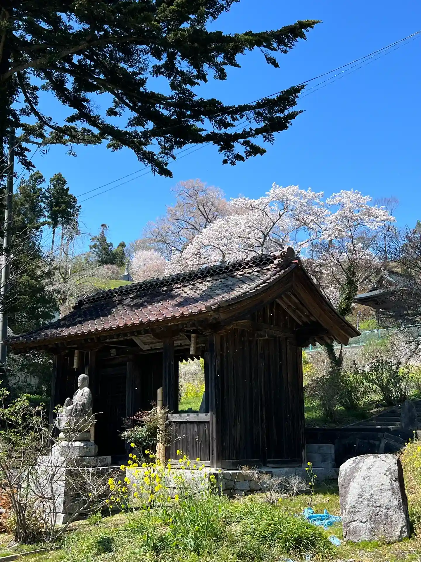 1週間ぶりの青空、龍泉寺前の段々畑は菜花が咲き乱れています。桜との共演も見ものです。