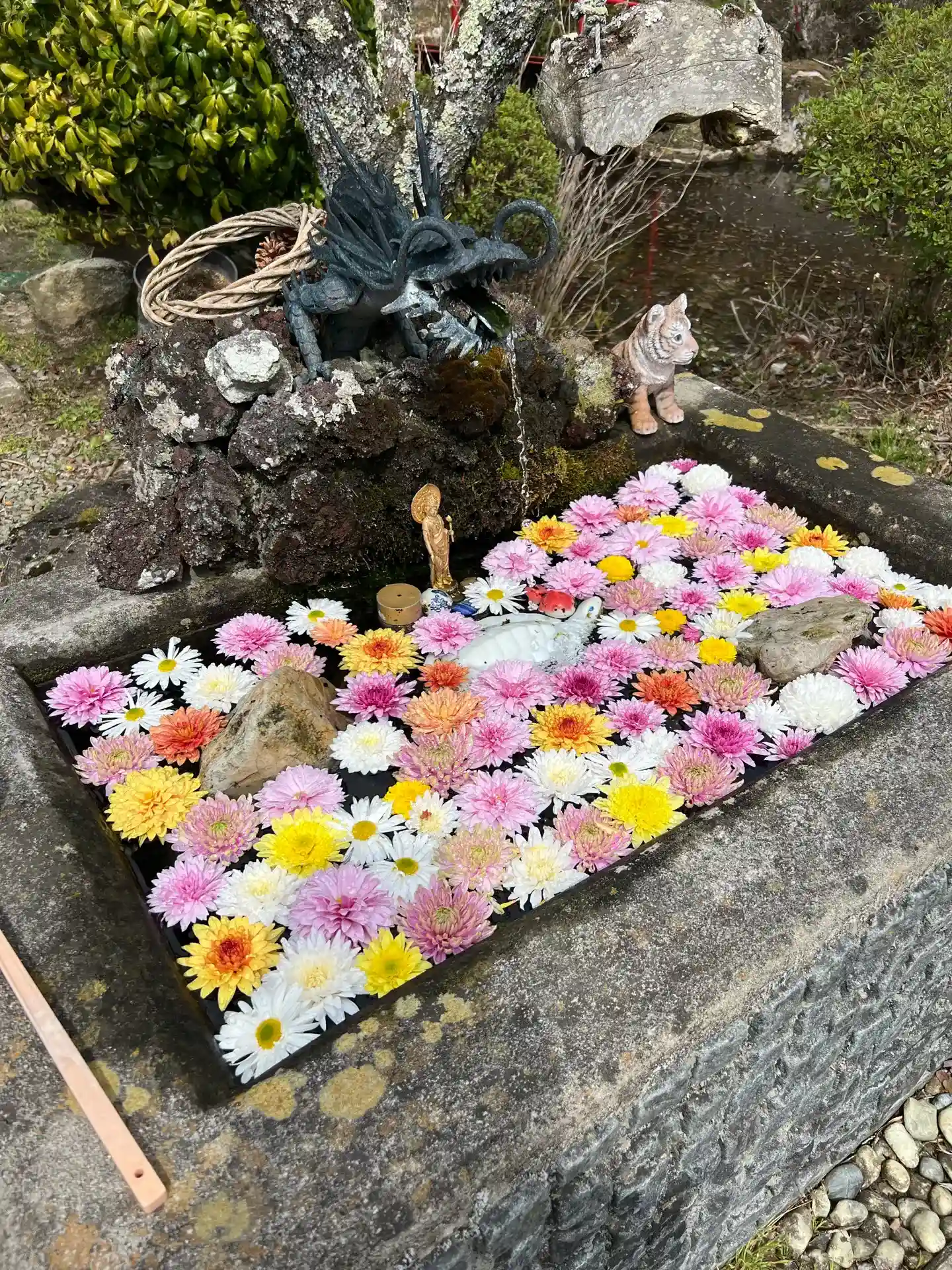 花手水🌺も檀家の方たちで綺麗に飾られています😘…
