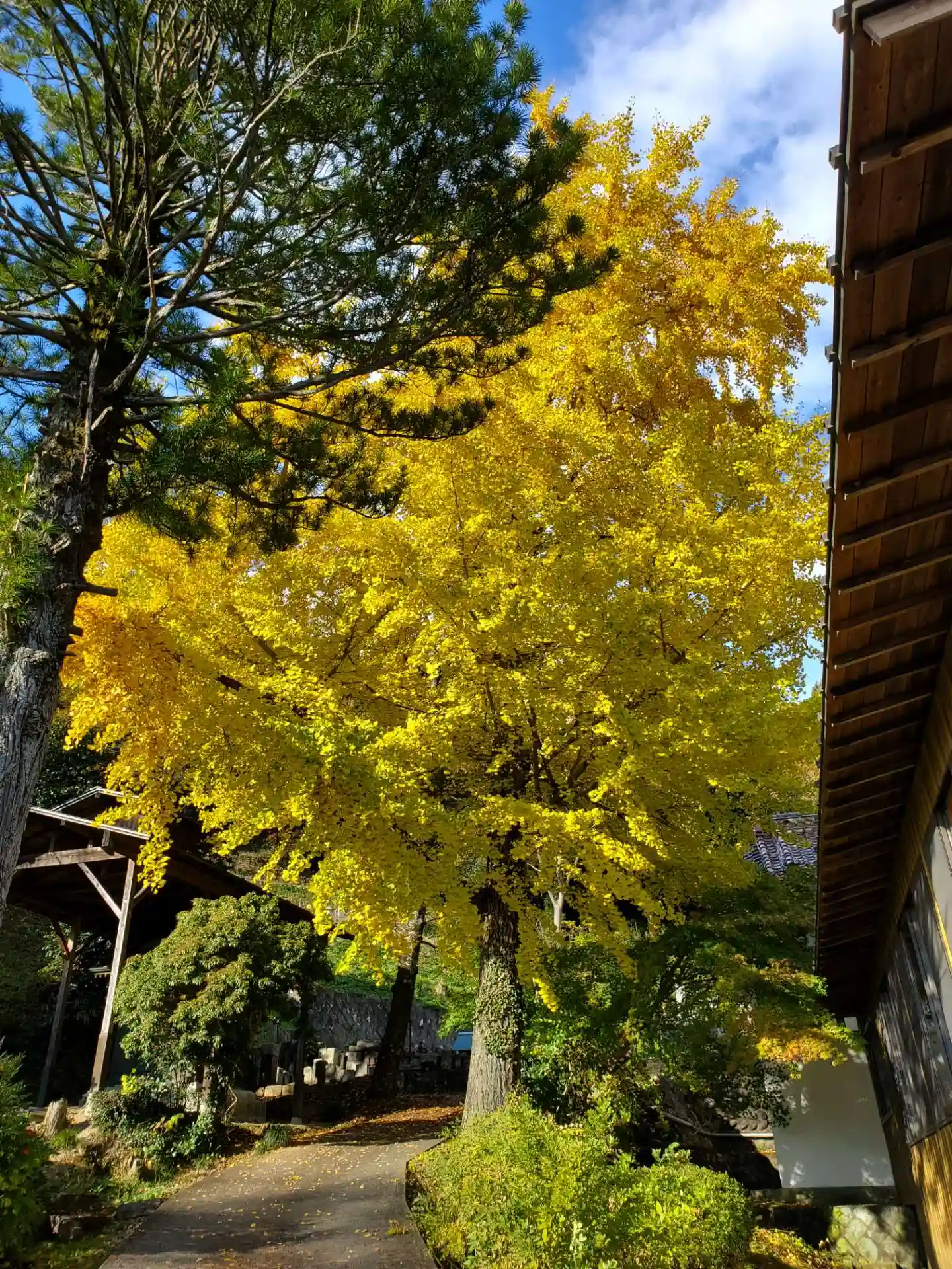 青空と銀杏と本堂