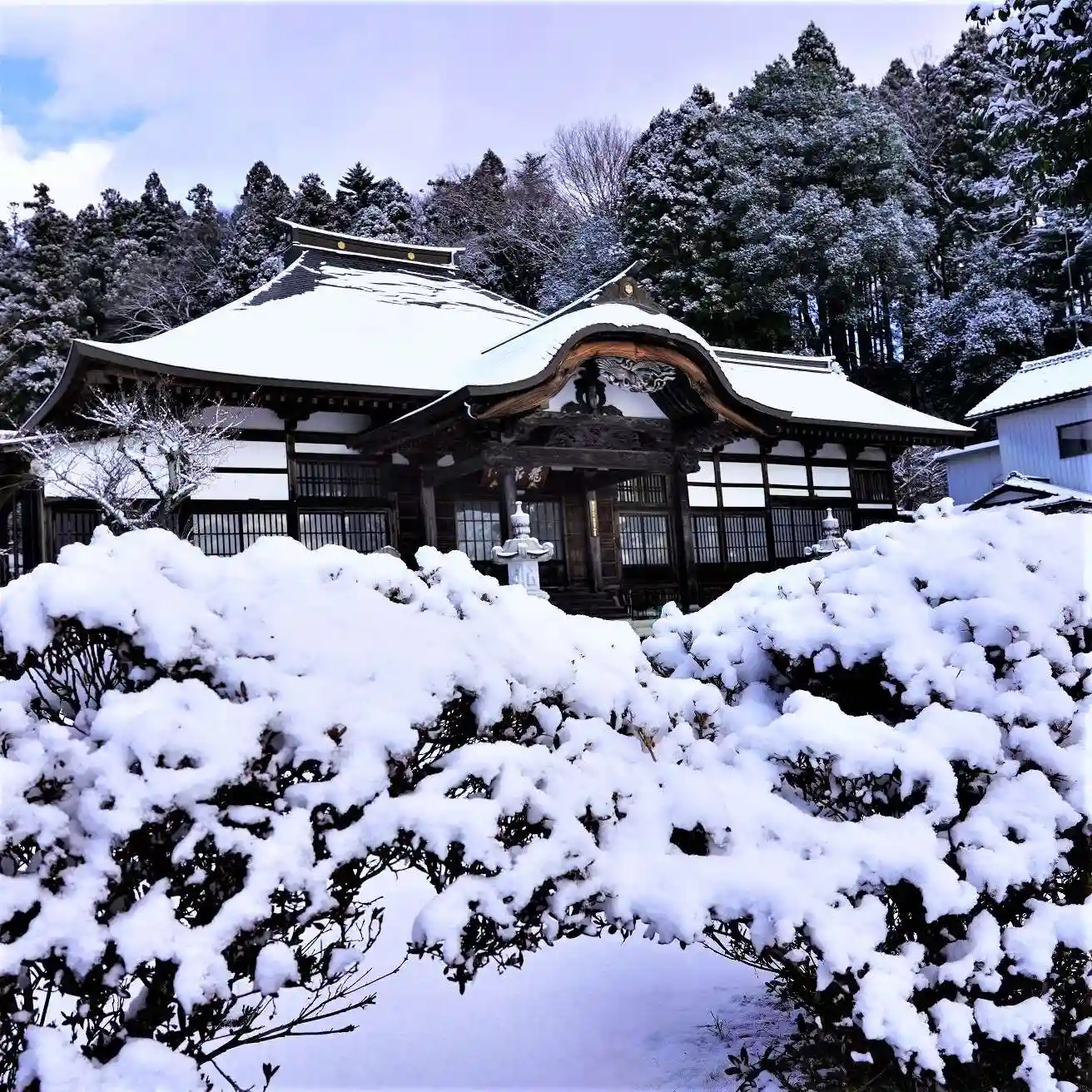 雪景色の龍泉寺です。
