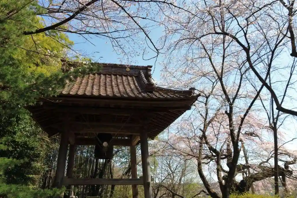 鐘撞堂の脇に樹齢350年のしだれ桜が