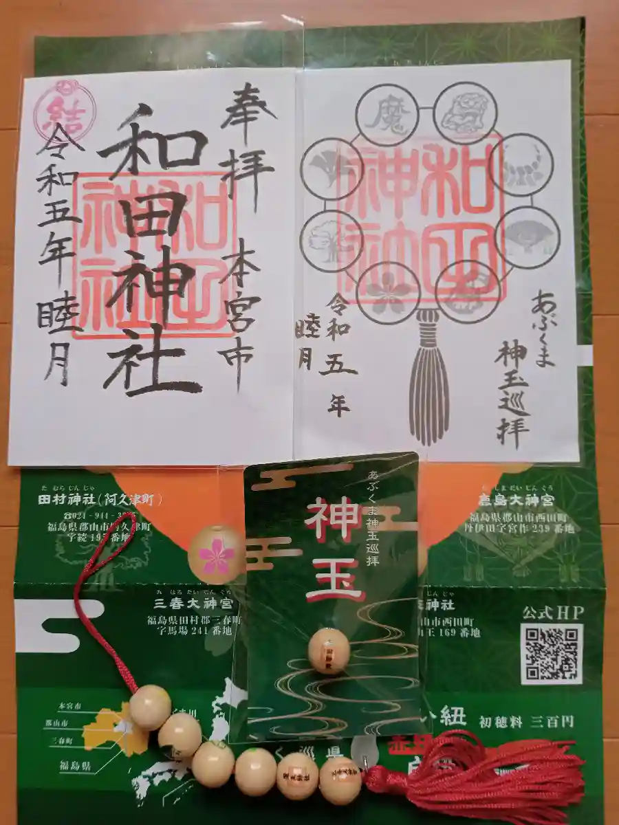 あぶくま神玉巡拝の御朱印と神玉。そして書き置きの御朱印です。