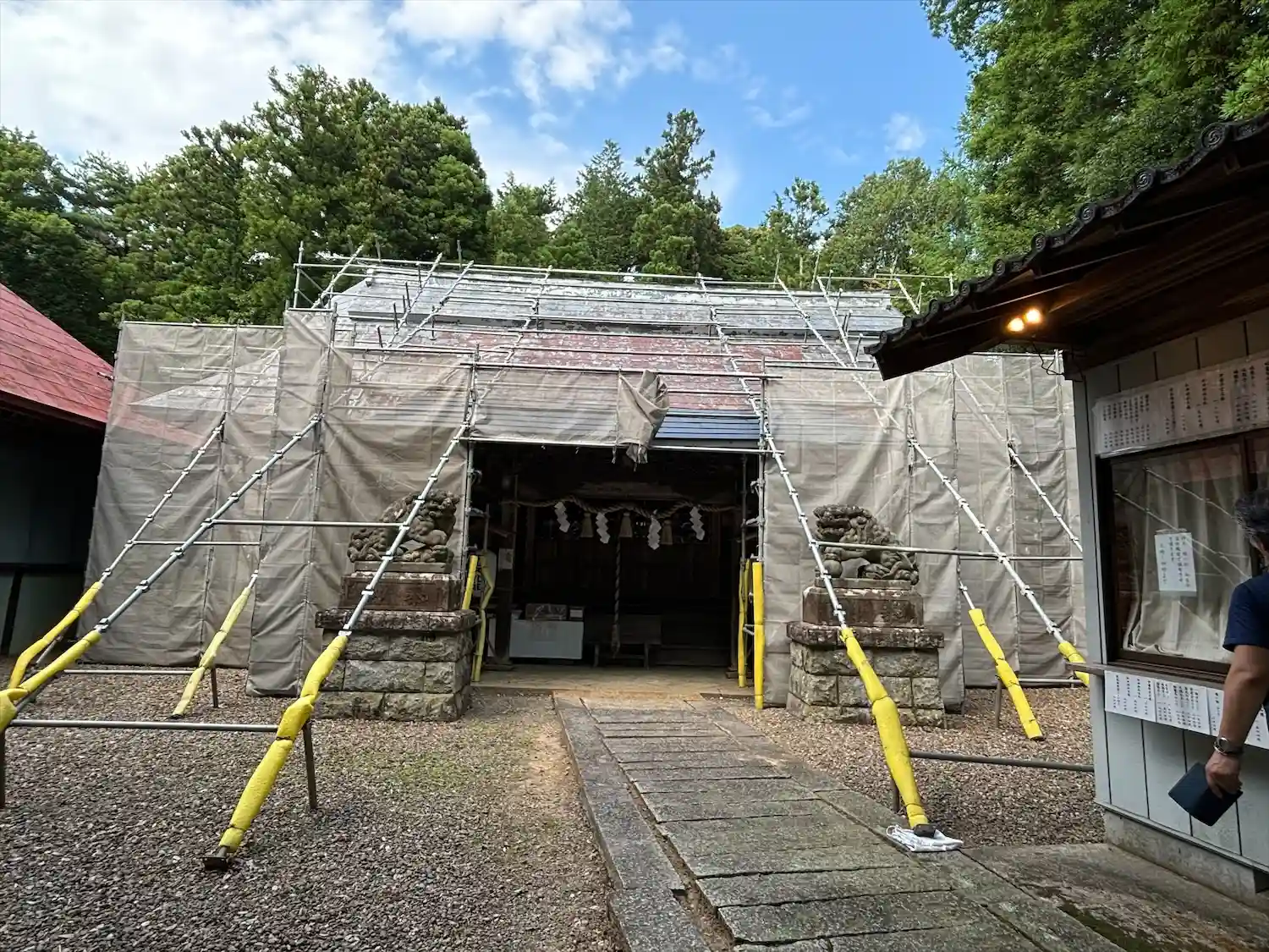 拝殿は足場がかかってます。
