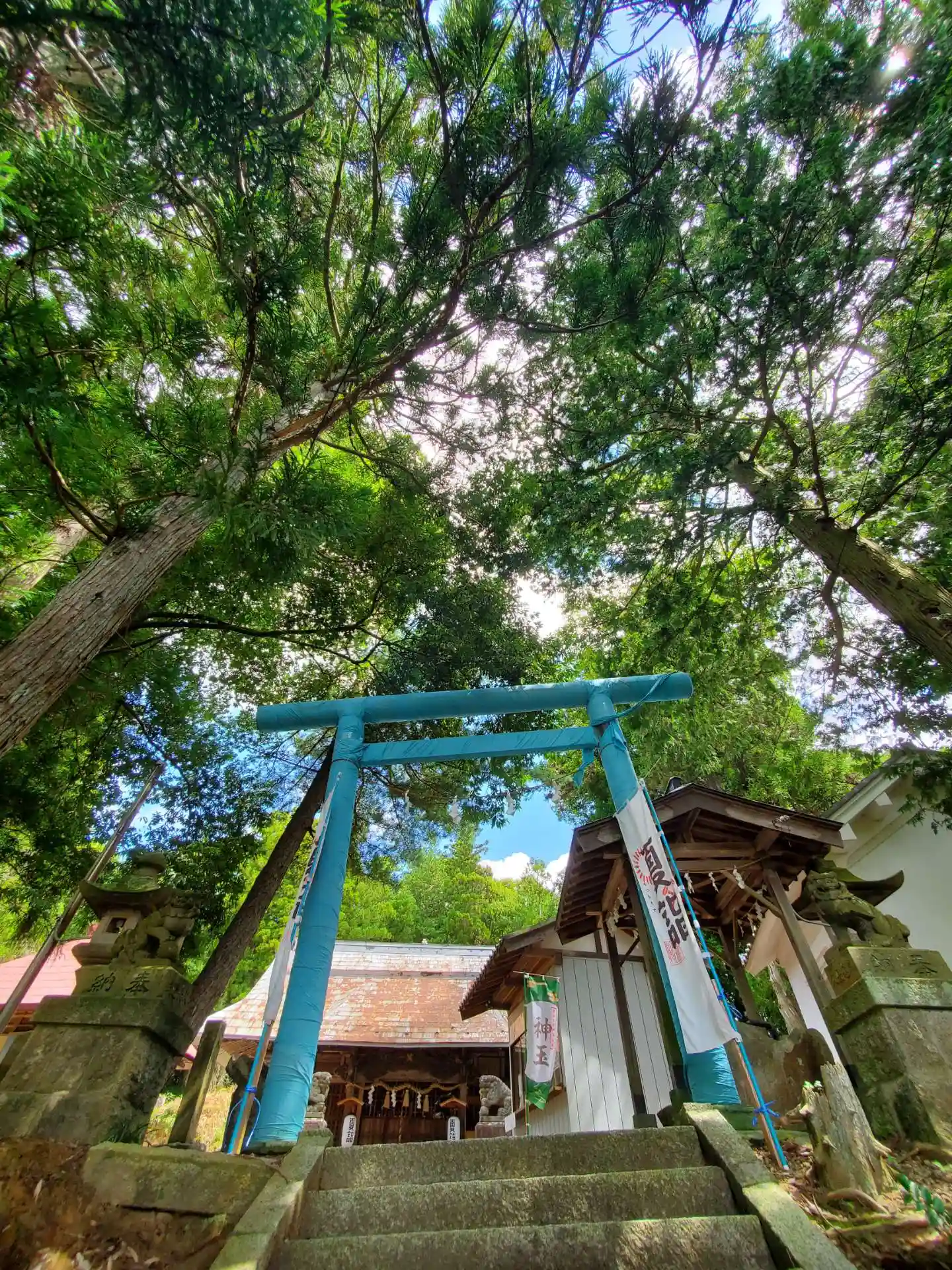鳥居が青かったのですが、テープが巻いてあるようなので修復中だったのかな?聞いてみればよかった。