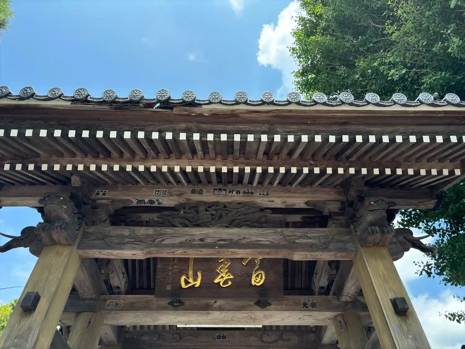 山門の横に大きなイチョウの木があります。