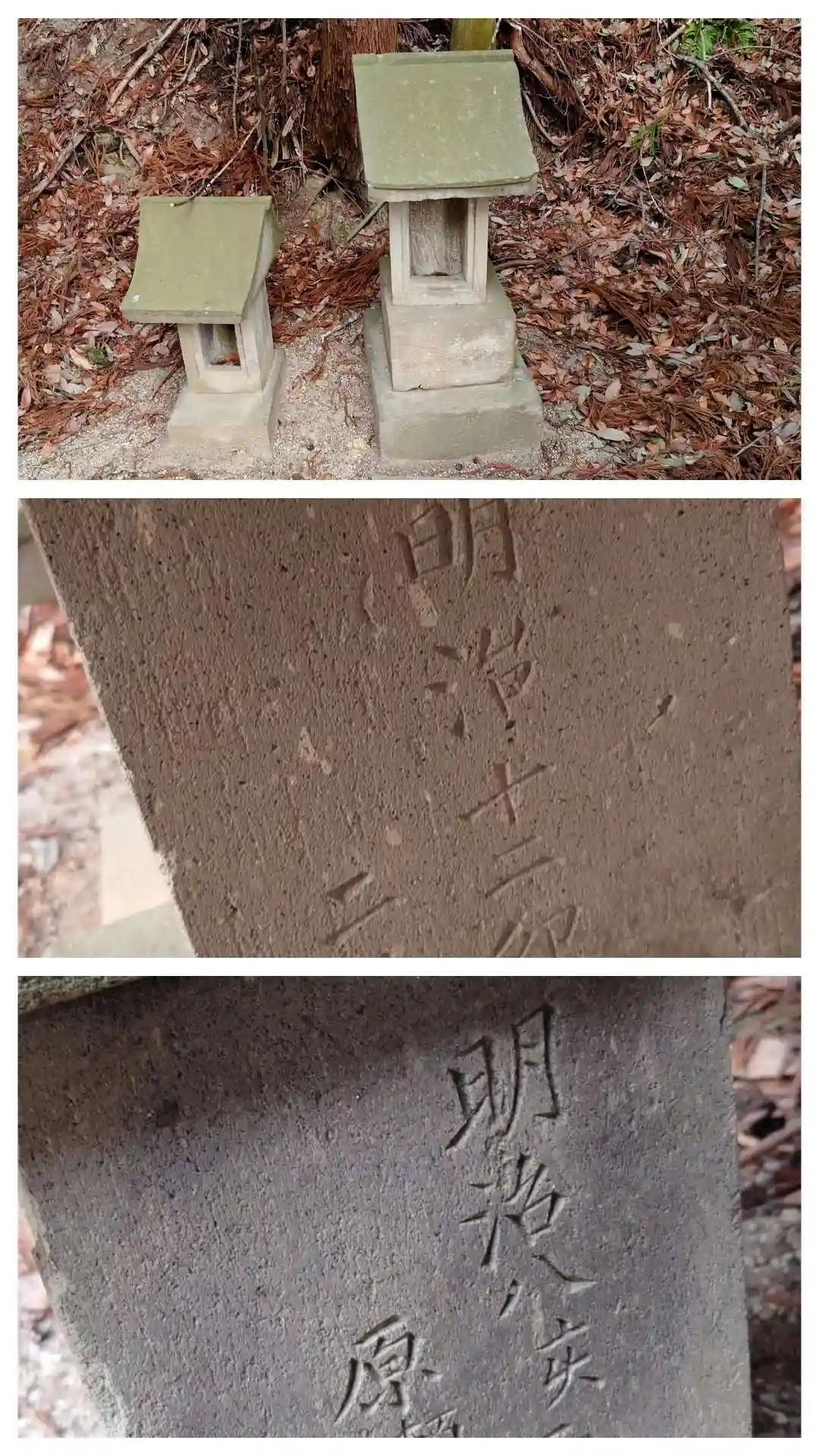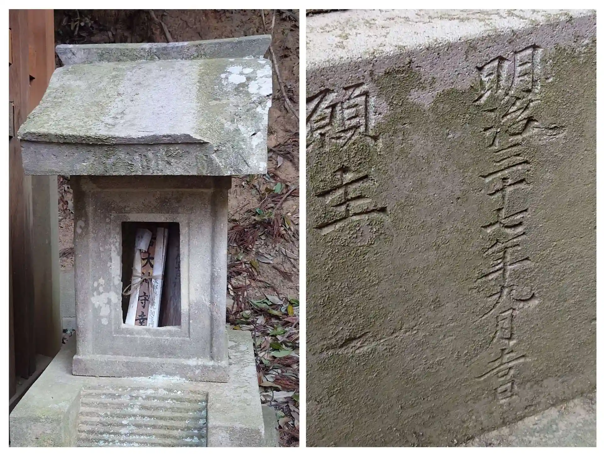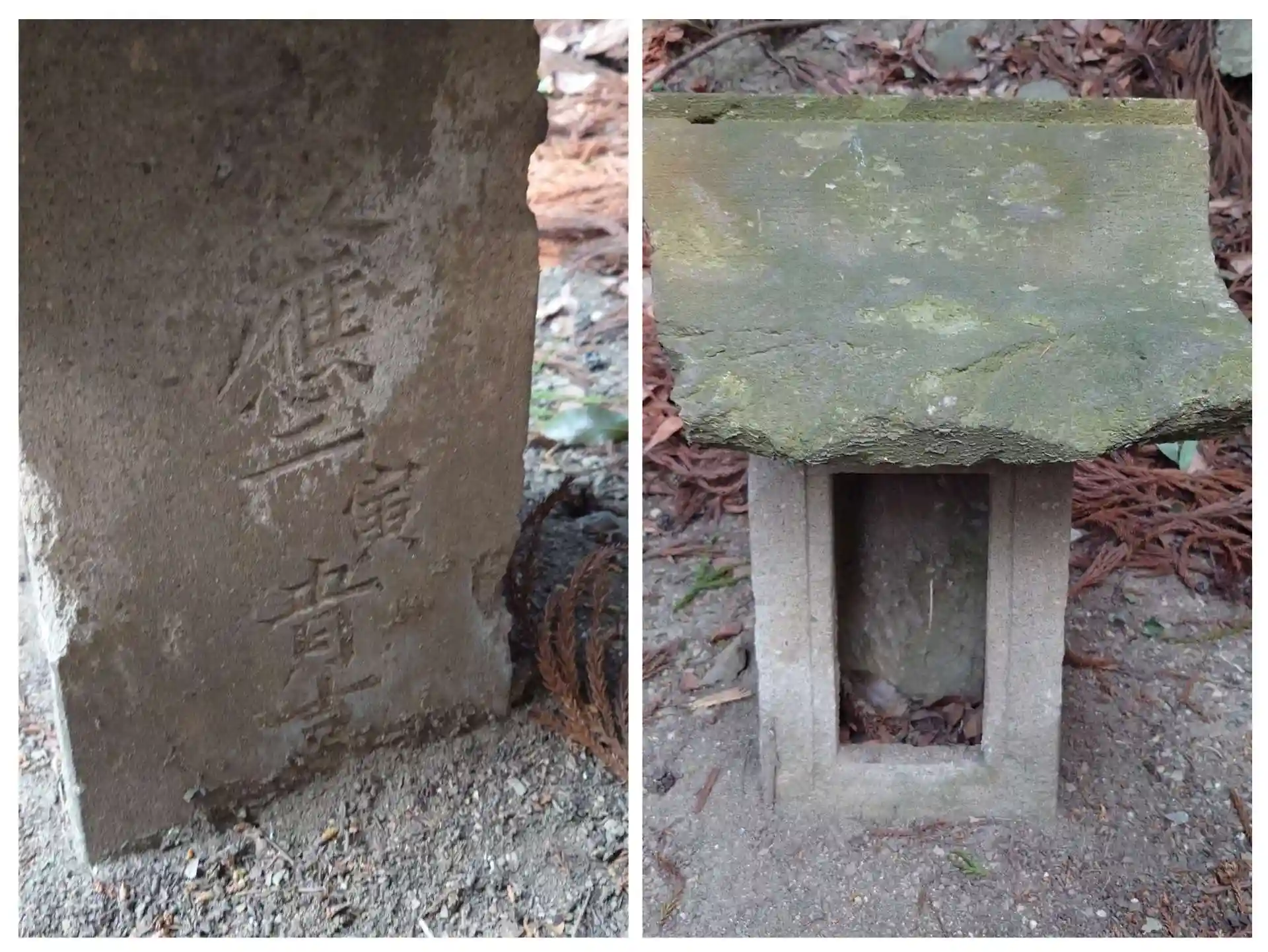 右、明治十二年(1879)造営の石祠 左、明治八年(1875)造営の石祠