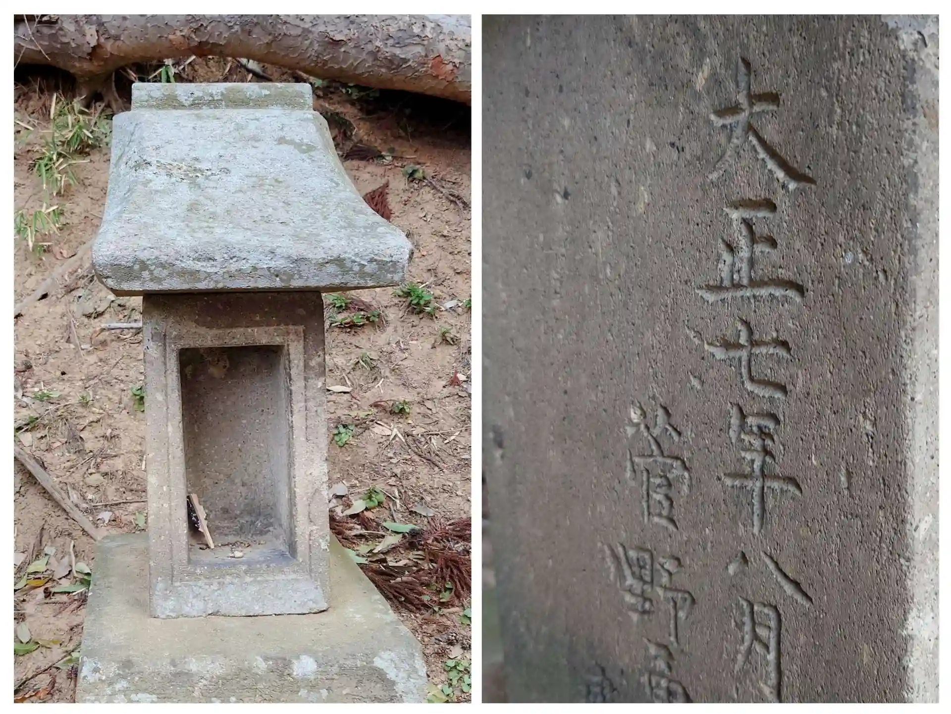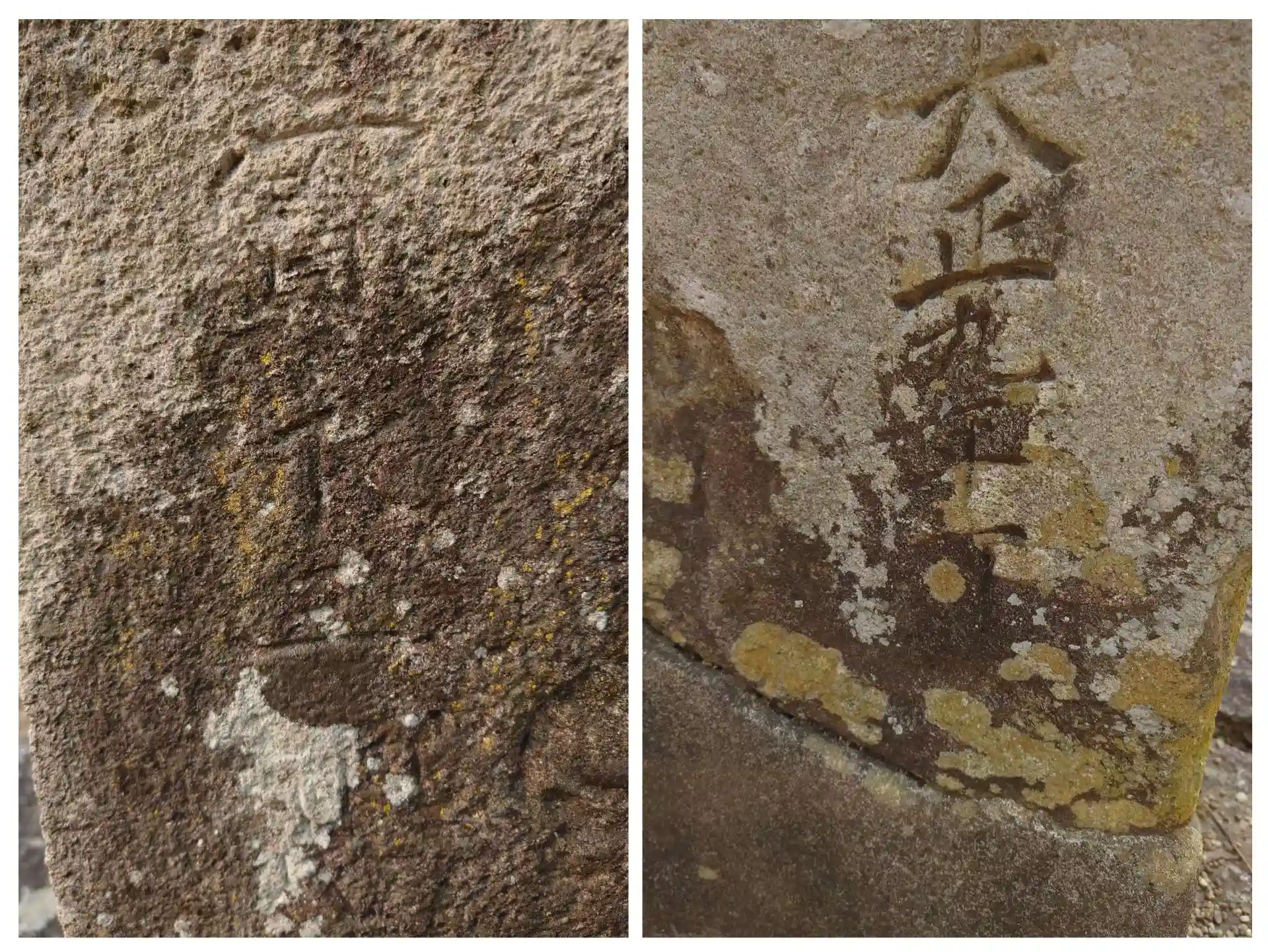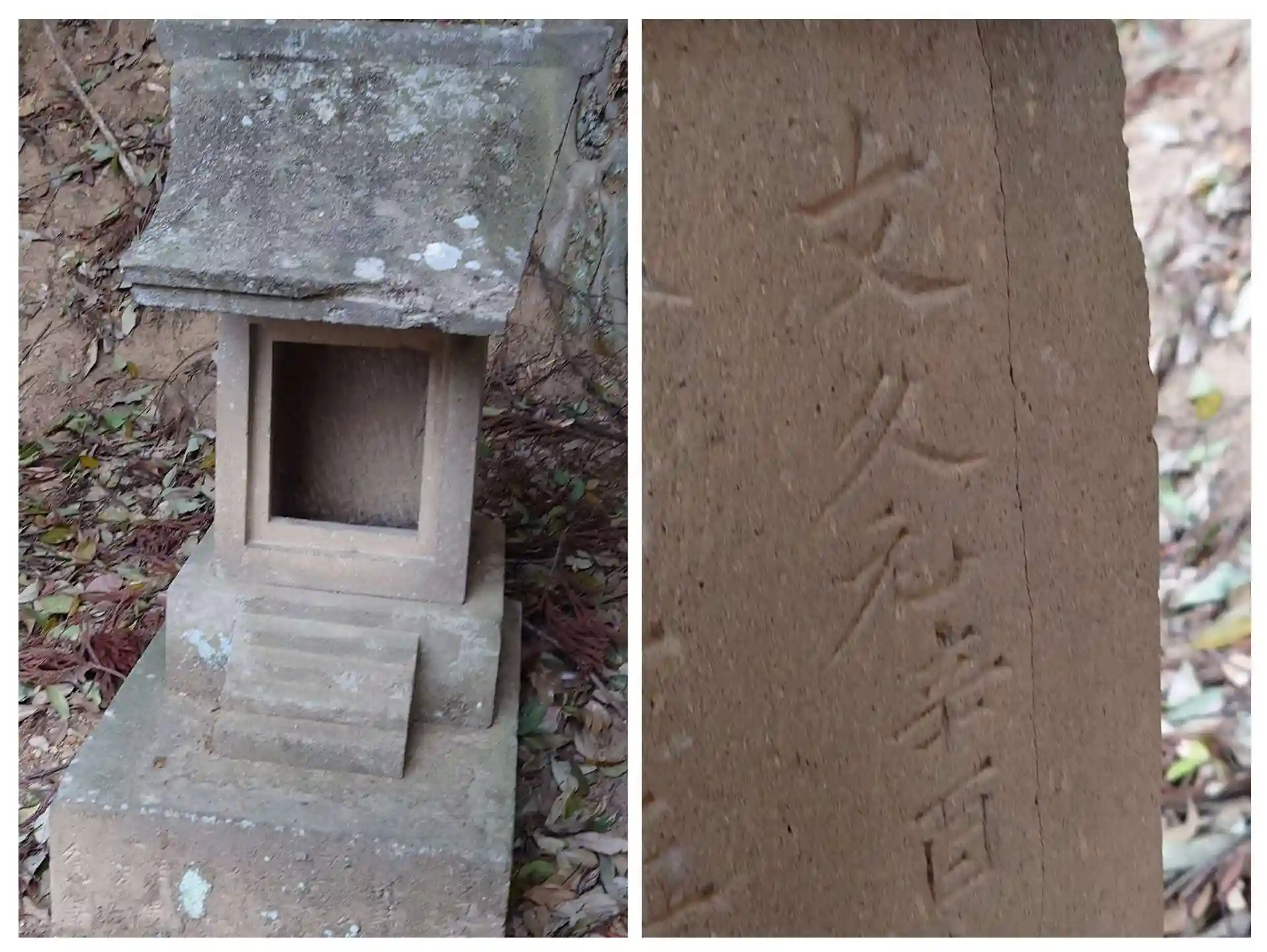 右、明治十二年(1879)造営の石祠 左、明治八年(1875)造営の石祠
