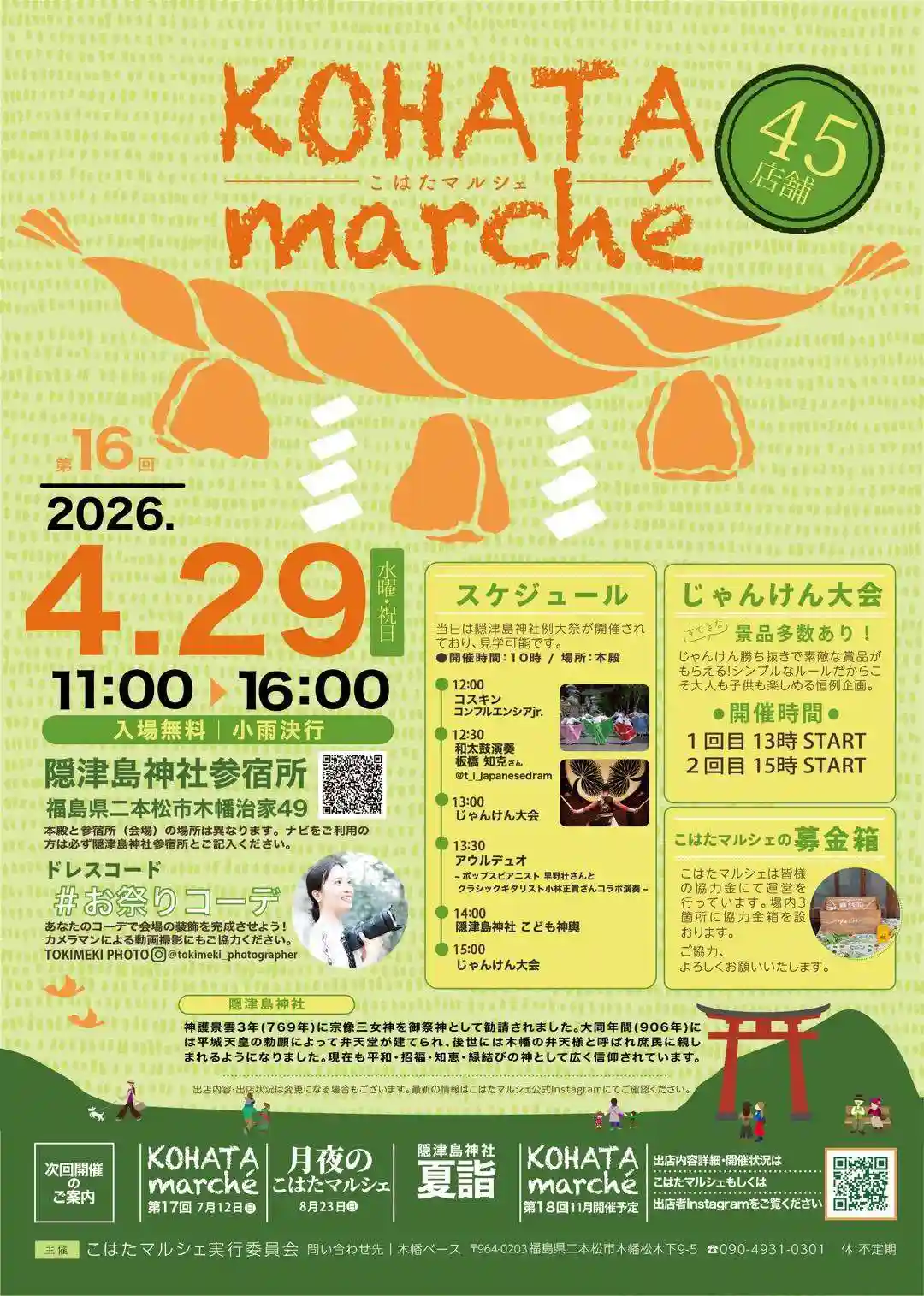 令和に入り、クラウドファンディングの実施、「こはたマルシェ」の開催、神社カフェ「こはたcafé」のオープンなど、地域活性化のために日々楽しみながら神明奉仕をしている。