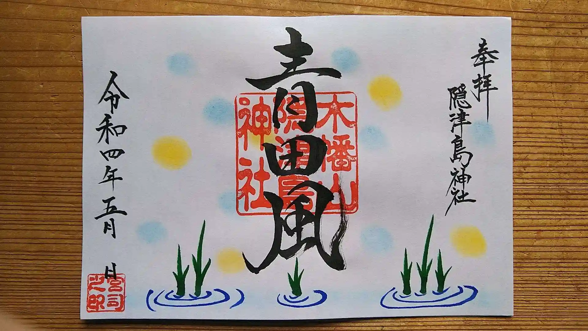 季節の御朱印「青田風」を5/15~6/30の期間限定でお分かち致します。