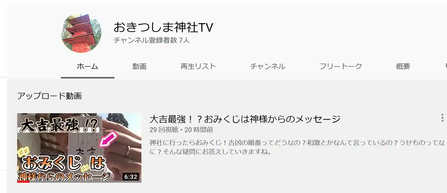この度、youtubeチャンネル「おきつしま神社TV」を開設いたしました。