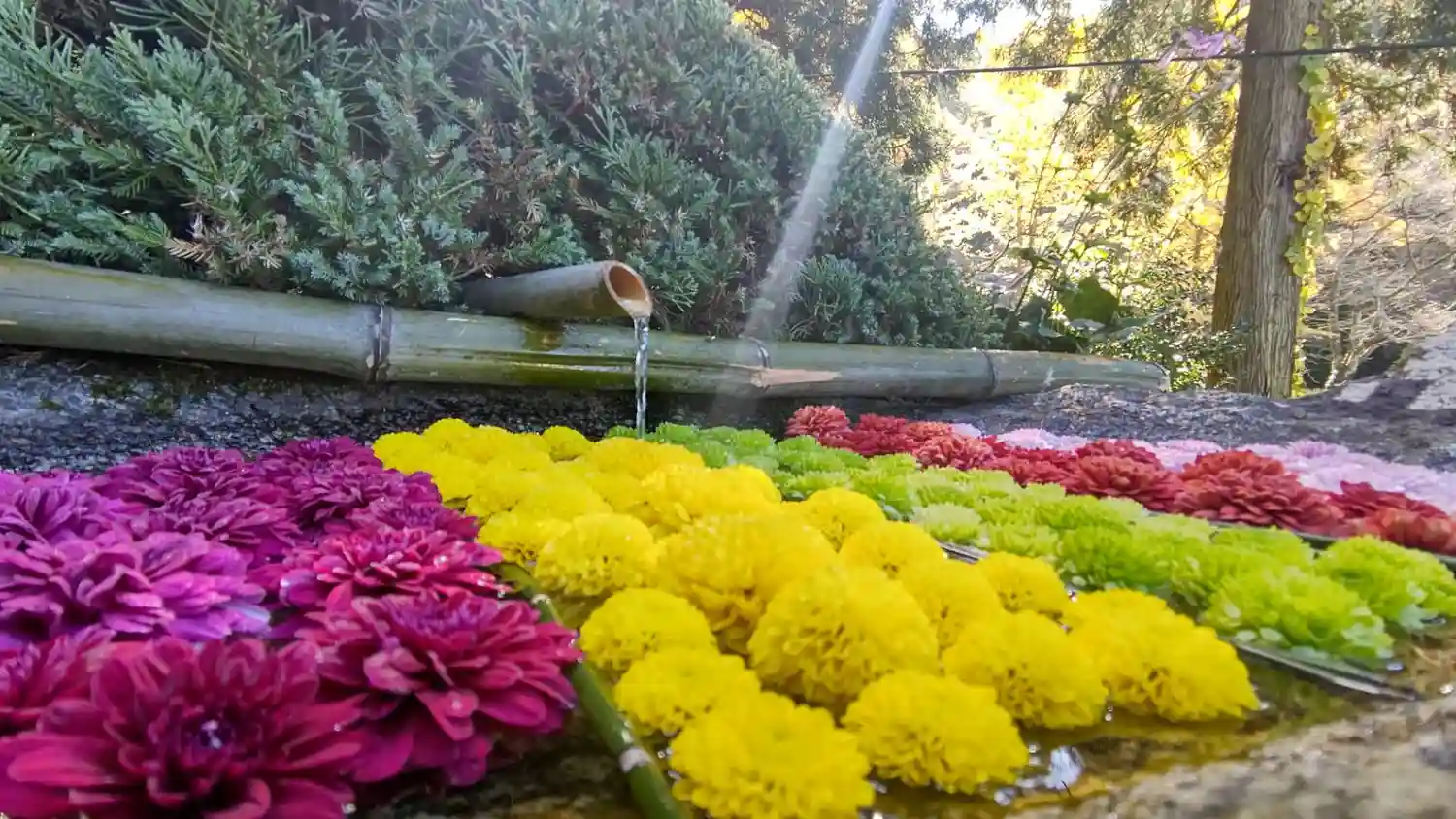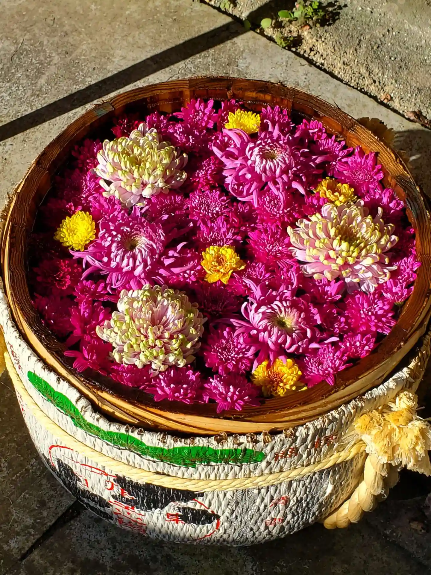 遥拝殿前の菊手水🌼