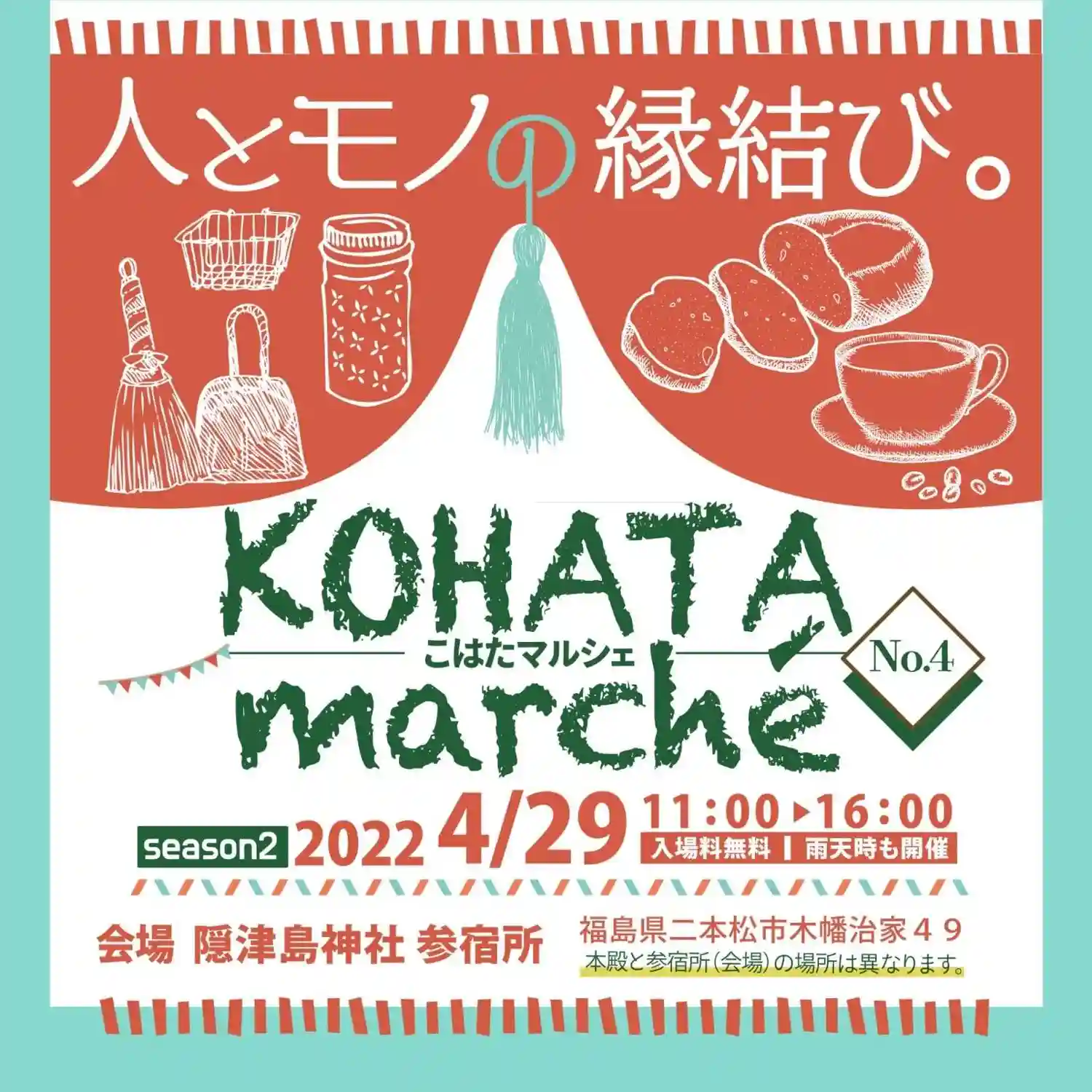 4/29,11時より隠津島神社例大祭に合わせて第4回こはたマルシェが参宿所(第二社務所近く)にて開…