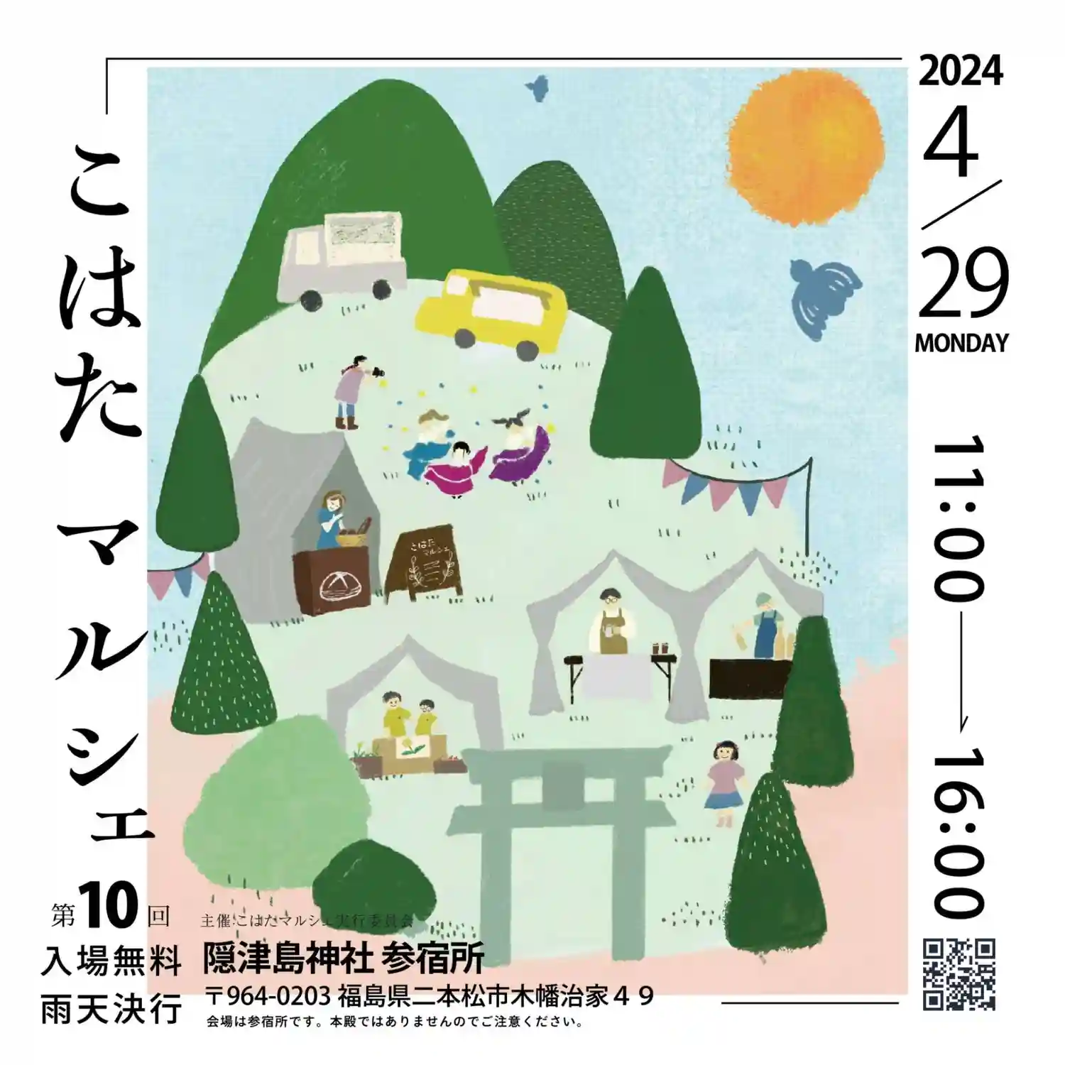 4/29,11時より第13回こはたマルシェが隠津島神社参宿所周辺で開催されます。