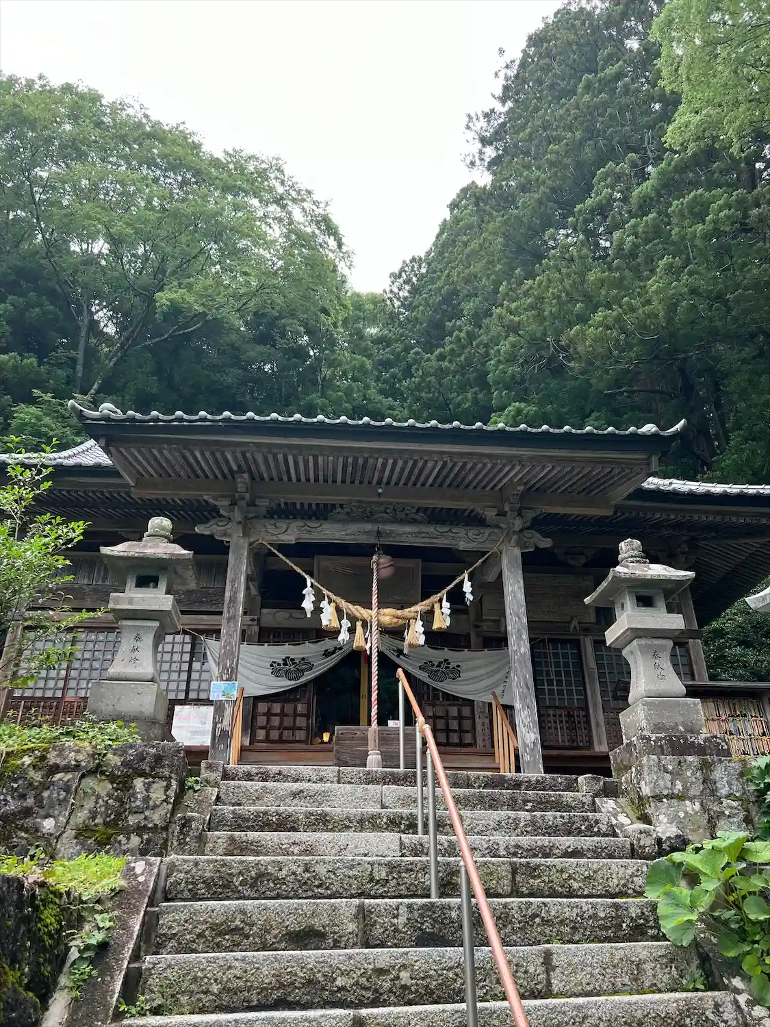 途中まで車で上り、本殿まで頑張って歩きました。