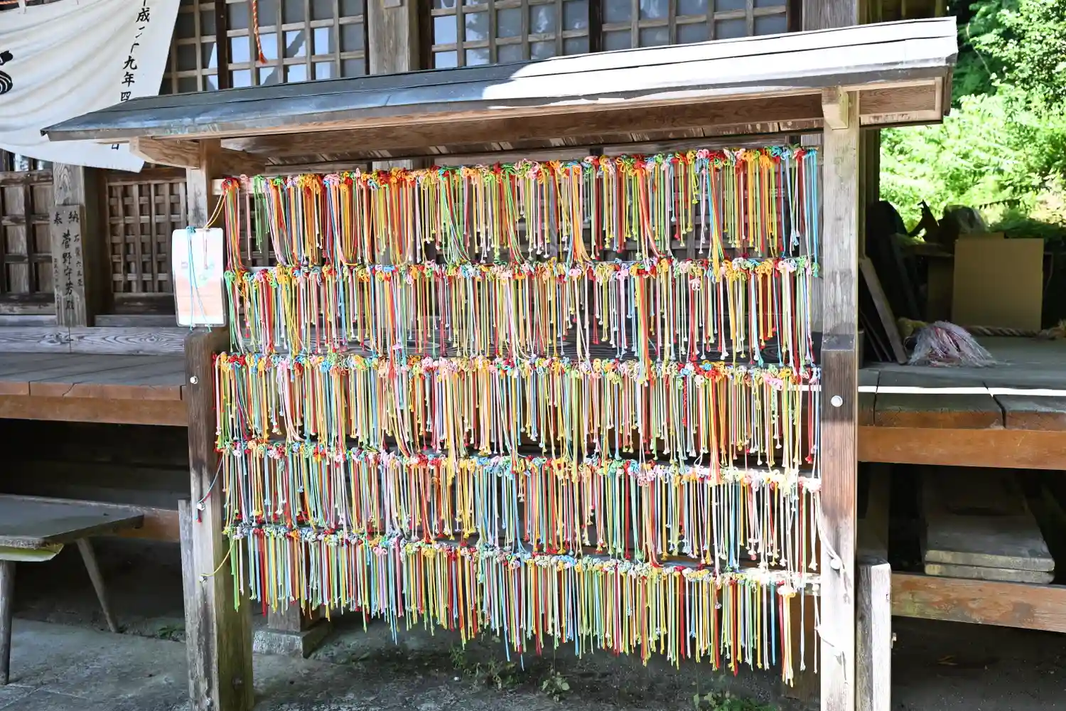 遥拝殿右手の紐掛けに結んでいただければ幸いです。