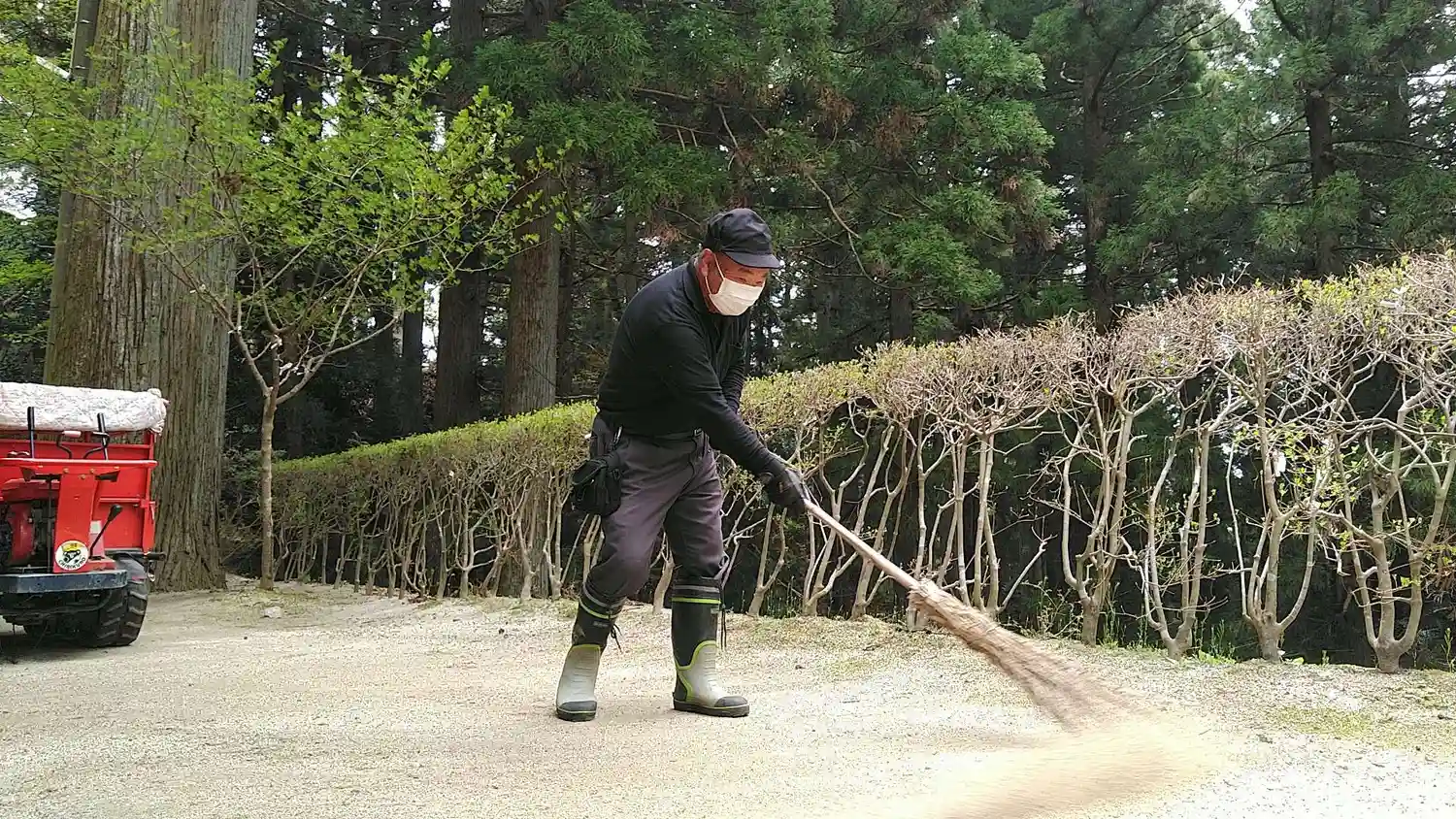 本日4/26、責任役員さんと総代のみなさんによる例大祭前の境内清掃を行いました。