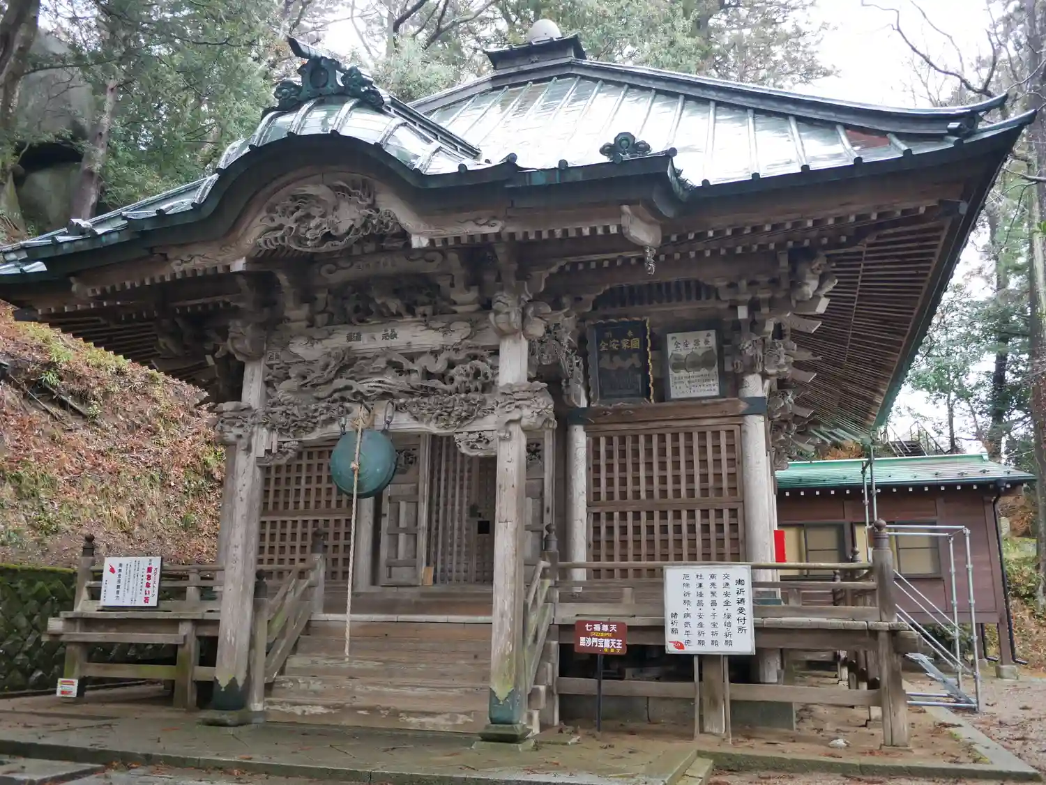 お堂の木彫が迫力満点でした。