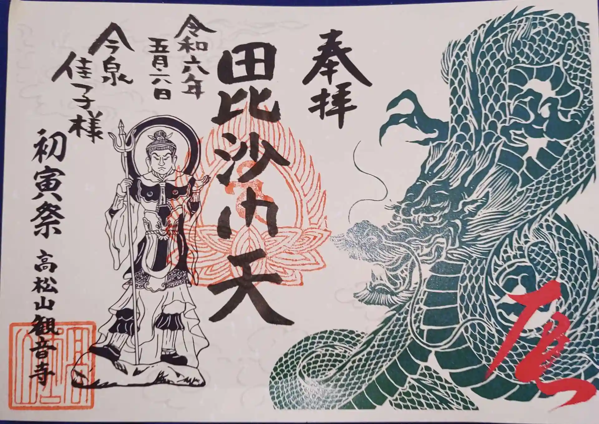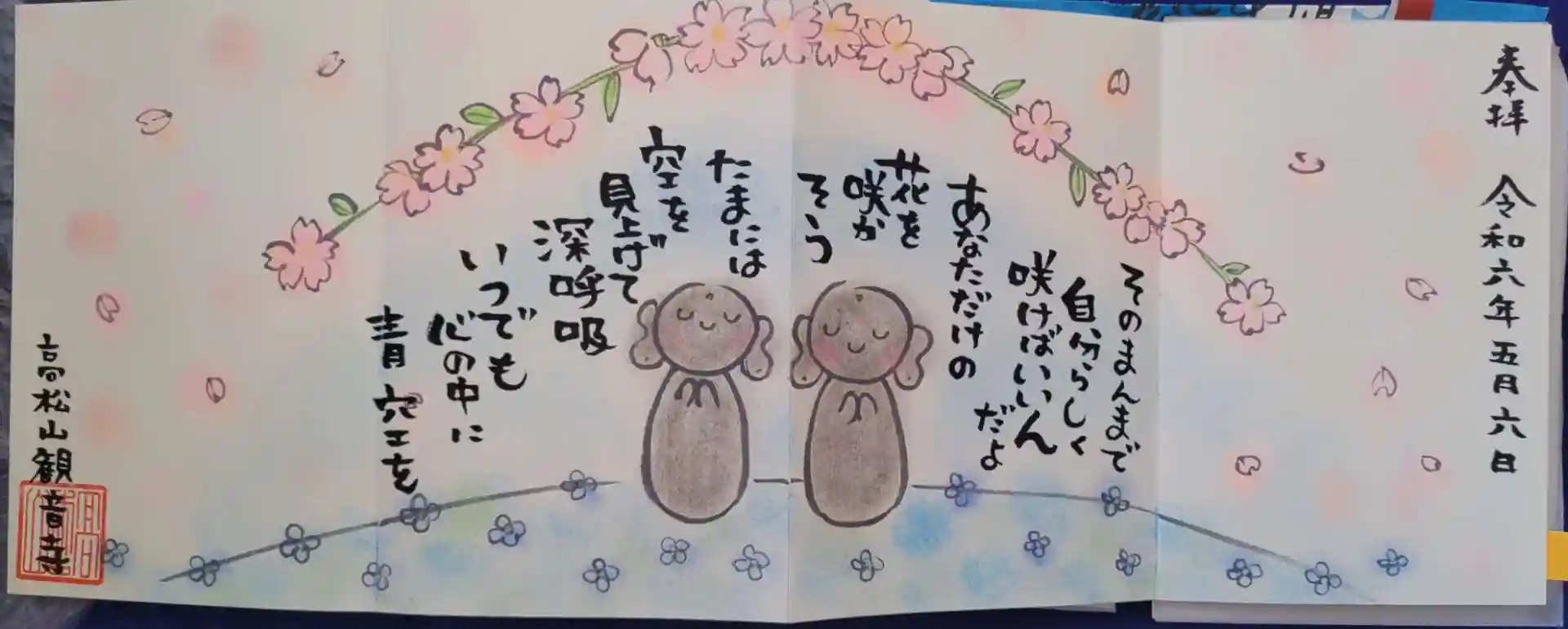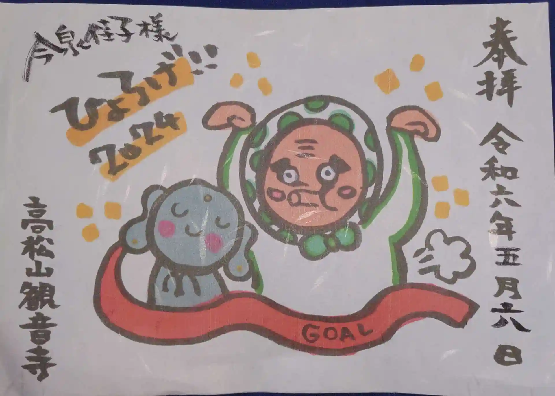 2/20(火)初寅祭には体調が悪かったり3/24(日)西田町の第三回ひょっとこロゲイニンクでは高松山観音寺さんも特別書き置きの御朱印があったと後から知って、欲しかったのですが、本日は二体を拝受することが出来て、本当に感激😲とても明るくて素敵な寺嫁さん、Instagramのフォロアーさんと触れ合ってお互いにフォローしましたよ。ご連絡して本日5/18(土)御朱印帳等を拝受しました。