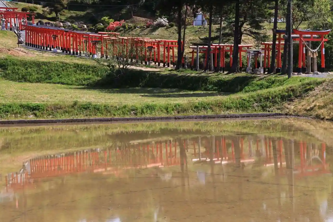 神社下の水田に水が張られて